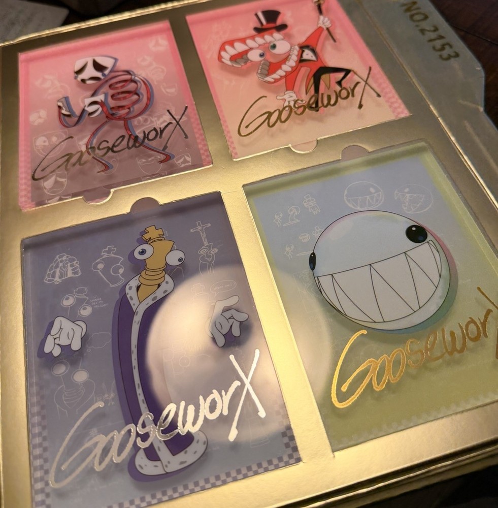 The Digital Circus Acrylic Art Collection by Glitch Productions is a limited-time and rare set of collectible pieces featuring characters from the popular animated TV show "The Amazing Digital Circus." Each piece is signed by the artists and made of high-quality acrylic material in vibrant multicolor tones. The collection includes characters like Jax, Pomni, Kinger, Bubble, Zooble, Ragatha, Gangle, and Caine, making it a must-have for fans of the franchise. The circus-themed artwork adds a whimsical touch to any collection, making it a standout piece for enthusiasts of animation merchandise. This item was a limited time and only so many were made and sold and is also no longer available making the item even rarer to obtain
