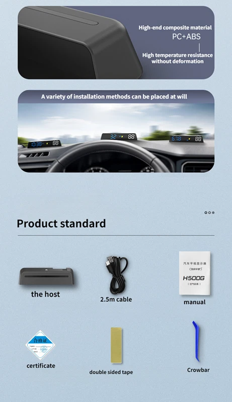 Product Description HUD Head Up Display High Definition Vehicle Code Meter Altimeter GPS Beidou USB Power Plug and Play Onboard Start and Stop Add our listing to Watchlist Or Add to Cart , you will get more discount Features: The best head-up display for all cars (as long as the car has a USB interface, it can be installed. The speed comes from GPS and Beidou positioning, as long as there is a 5V power supply or even a power bank can be used.) 1: Head-up display (H500G) for daily commuting to keep you focused while driving 2: One-time installation on the dashboard, the wiring is concealed, the appearance is the same as the original car, the machine does not hurt the car, and it is safe to use. 3: Don't worry about being glaring when you use it at night, it will not be glaring, the built-in photosensitive element will automatically adjust the screen brightness according to the ambient brightness, making the display soft and easy to identify, and you can also change the minimum brightness through settings to suit your needs. 100% Brand new and high quality Material:ABS Color:Black Digital display :Blue/White Size:138x27x41mm Support: Speed, Clock, Direction, Altitude, Overspeed alarm, Tripmeter, Driving time, Altitude Payment Returns Contact Us Shipping We accept payment by PayPal only ! Payment should be completed within 5 days after buyer places the order,or else an unpaid case will be opened in order to cancel the transaction. If you can not pay in time, please contact us. e-check from PayPal will only be processed once the payment clears. All of the items will be shipped to buyer's EBAY address,please confirm your address on Ebay before you buy.Your order will be usually shipped out the same or next business days once the payment is made and cleared. 30-day Warranty with Exchange for defective, malfunctioned, incorrect or parts-missing items. Please notify us and return the item with all parts and accessories packed and marked "FOR EXCHANGE" within 14 days of receipt. If defective, malfunctioned or parts-missing items are no longer available, a refund may be issued. All returning postage costs will be the responsibility of the buyers under all circumstances. If you encounter any problems about anything, please feel free to contact us and we will do our best to assist you solve the issue. If you are not satisfied in anyway, please feel free to let us know and give us a second chance to correct it before you decide to leave any neutral or negative feedback. Please contact us through eBay link if you have any questions. We will reply you within 24- 48 hours. Please check you spam mail if no response for 48 hours. All items will be checked before packing. All items are new and of high quality. Item will be shipped within 1 business days upon receipt of payment, excluding weekends and public holidays. If to USA,we will ship your order by USPS,it will take about 8-12 working days to you,and you can track it on line. If to other country,we will ship your order by China Post or Singapore Registered Air Mail,it will take about 14-21 working days to you,you aslo can track it on line. Delivery time is about 14-28 business days and it may take up to 8 weeks . Payment We accept payment by PayPal only ! Payment should be completed within 7 days after buyer places the order,or else an unpaid case will be opened in order to cancel the transaction. If you can not pay in time, please contact us. eCHECK from PayPal will only be processed once the payment clears. All of the items will be shipped to buyer's EBAY address,please confirm your address on Ebay before you buy.Your order will be usually shipped out the same or next business days once the payment is made and cleared. Returns 30-day Warranty with Exchange for defective, malfunctioned, incorrect or parts-missing items. Please notify us and return the item with all parts and accessories packed and marked "FOR EXCHANGE" within 14 days of receipt. If defective, malfunctioned or parts-missing items are no longer available, a refund may be issued. All returning postage costs will be the responsibility of the buyers under all circumstances. Contact Us If you encounter any problems about anything, please feel free to contact us and we will do our best to assist you solve the issue. If you are not satisfied in anyway, please feel free to let us know and give us a second chance to correct it before you decide to leave any neutral or negative feedback. Please contact us through eBay link if you have any questions. We will reply you within 24- 48 hours. Please check you spam mail if no response for 48 hours. Shipping All items will be checked before packing. All items are new and of high quality. Item will be shipped within 1 business days upon receipt of payment, excluding weekends and public holidays. If to USA,we will ship your order by USPS,it will take about 7-10 working days to you,and you can track it on line. If to other country,we will ship your order by China Post or Singapore Registered Air Mail,it will take about 14-21 working days to you,you aslo can track it on line. Delivery time is about 14-28 business days and it may take up to 8 weeks . Welcome to our Store ~