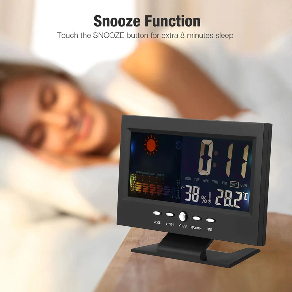 Details [All-in-One Design] Color LCD screen, can be used as an alarm clock, showing time, date, day of the week, temperature, humidity trends, weather display, perpetual calendar. [LARGE LED] This clock is characterized by large LED color screen and backlight design, which enables it to make you easily read the data clearly even at night. [Features] This clock including 12/24 hours switching, alarm clock function, high clarity screen, humidity/temperature measurement, time/week display, voice-controlled backlight, weather forecast and so on. [QUALITY] Made of high quality ABS material, this product is lightweight and durable to use. The length of the product is 14.5cm, the width is 11cm, and the height is 5.5cm. [Wide Uses] It is suitable for home, office, dormitory, school, etc. Press the LIGHT button to turn on or off the backlight, or turn on the backlight by clapping your hands or tapping the table within one meter, the backlight will be automatically turned off after 5 seconds, Specifications: Color:Black Shell Material: ABS Dial Material: Plexiglass Dimensions: 5.9" x 3.46" x2.17" Power Supply: Comes with USB - Also can use 2 x AAA Batteries (not included) Time Display: 12/24 Hour Switch Date: 2001-2099 Temperature Measurement Range: -9.9-60°C (14.2-140°F) Temperature Unit: °C/°F Humidity Range: 20%RH~99%RH Features & Tips Colorful and eye-pleasing display. Measure temperature and humidity, °C or °F switchable. Record max. & min. temperature & humidity values. Clock display, 12/24 hour switchable. Show you time, date, month and week, and you can set time, date, month, year by yourself. With alarm, snooze, weather comfort level, and temperature trend indication functions, really practical. Voice-activated backlight, energy-saving and convenient to use. You can turn off the voice control function through the switch on the back of the product. With a bracket, it can be placed on the table. With a hanging hole, it also can be hung on the wall. All-in-One Design Color LCD screen, can be used as an alarm clock, showing time, date, day of the week, temperature, humidity trends, weather display, perpetual calendar. Large LED This clock is characterized by large LED color screen and backlight design, which enables it to make you easily read the data clearly even at night. Quality Made of high quality ABS material, this product is lightweight and durable to use. The length of the product is 14.5cm, the width is 11cm, and the height is 5.5cm. Features This clock including 12/24 hours switching, alarm clock function, high clarity screen, humidity/temperature measurement, time/week display, voice-controlled backlight, weather forecast and so on. Package includes: 1 x LED Digital Alarm Clock Snooze Calendar Thermometer Hygrometer Weather Displa Shipping Policy Payment Method Returns Policy Shipping Policy 1. Item will be shipped 24-48 hours after full payment is received. 2. eBay’s estimated delivery date can only be considered as an average delivery date (some orders may be quicker, some may be slower). 3. The shipping time is about 3 to 10 business days exclude Sat and Sun. Payment Method This is the description of Payment Method. Do not dismiss your dream. To be without dream is to be without hope. To be without hope is to be without purpose. Do not run through your life so fast that you forget not only where you have been, but also where you are going. Life is not race, but a journey to be savored each step of the way. Returns Policy This is the description of Returns Policy. Do not dismiss your dream. To be without dream is to be without hope. To be without hope is to be without purpose. Do not run through your life so fast that you forget not only where you have been, but also where you are going. Life is not race, but a journey to be savored each step of the way. Home Payment Shopping About Us Contact Us Copyright©2018 datacaciques Home Payment Return Policy About us Contact us Details [All-in-One Design] Color LCD screen, can be used as an alarm clock, showing time, date, day of the week, temperature, humidity trends, weather display, perpetual calendar. [LARGE LED] This clock is characterized by large LED color screen and backlight design, which enables it to make you easily read the data clearly even at night. [Features] This clock including 12/24 hours switching, alarm clock function, high clarity screen, humidity/temperature measurement, time/week display, voice-controlled backlight, weather forecast and so on. [QUALITY] Made of high quality ABS material, this product is lightweight and durable to use. The length of the product is 14.5cm, the width is 11cm, and the height is 5.5cm. [Wide Uses] It is suitable for home, office, dormitory, school, etc. Press the LIGHT button to turn on or off the backlight, or turn on the backlight by clapping your hands or tapping the table within one meter, the backlight will be automatically turned off after 5 seconds, Specifications: Color:Black Shell Material: ABS Dial Material: Plexiglass Dimensions: 5.9" x 3.46" x2.17" Power Supply: Comes with USB - Also can use 2 x AAA Batteries (not included) Time Display: 12/24 Hour Switch Date: 2001-2099 Temperature Measurement Range: -9.9-60°C (14.2-140°F) Temperature Unit: °C/°F Humidity Range: 20%RH~99%RH Features & Tips Colorful and eye-pleasing display. Measure temperature and humidity, °C or °F switchable. Record max. & min. temperature & humidity values. Clock display, 12/24 hour switchable. Show you time, date, month and week, and you can set time, date, month, year by yourself. With alarm, snooze, weather comfort level, and temperature trend indication functions, really practical. Voice-activated backlight, energy-saving and convenient to use. You can turn off the voice control function through the switch on the back of the product. With a bracket, it can be placed on the table. With a hanging hole, it also can be hung on the wall. All-in-One Design Color LCD screen, can be used as an