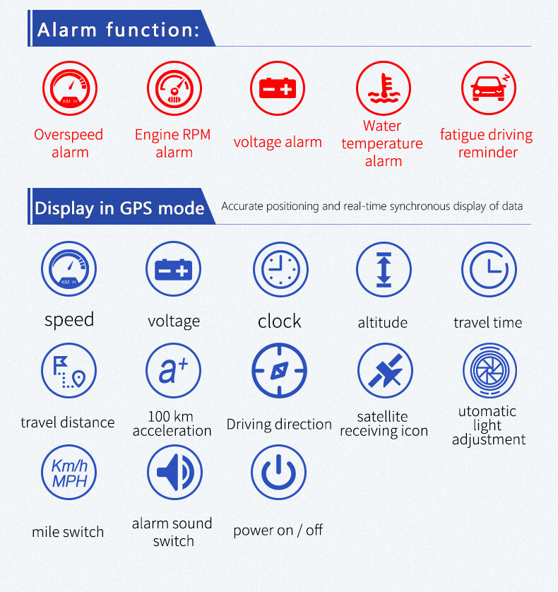 Product Description Multifunctional 3.5 Inch Car HUD Head-up Display OBD2 GPS Speedometer Overspeed Alarm Projection On Car Glass Description: HUD short for Head Up Display,the main function is to reflect the car dashboard information (e.g. speed,RPM,water temperature,voltage,trip distance etc) Main Function: OBD System (For OBD2 car) Functions:Vehicle speed,engine RPM,water temperature,voltage,fuel consumption,altitude,clock, travel time,travel distance,number of compass satellites. GPS System (For all car) Functions:Speed,Voltage,Compass,Number of Satellites,Speed Icon,Decorative bar Features: 1. The hood design, shields the excess light of the head-up display, and does not dazzle the eyes when driving at night. 2. 6 alarm modes: overspeed alarm, speed alarm, voltage alarm, water temperature alarm, fault code clearing, fatigue driving reminder. 3. Support two power supply modes: OBD Cable supply and USB Cable supply. 4. Automatically turn on/off, start and stop with the car, automatically adjust the brightness, 3.5-inch large screen. Specification: Color: Black Material: PC/ABS Size: 90*55*30mm(3.5-inch) Working voltage: 11V~18Vdc (12Vdc/200mA) Please use the USB cable if car voltage > 24V Package Included: 1*Car HUB Displayer 1*OBD2 Cable 1*USB Cable 1*Reflective film 1*English Manual 1*Sticker Note: This product is a dual system:Users can freely choose the mode(press the '+' key to select OBD or GPS system) before the OBD icon on screen stop to flash,it will automatically save and enter your last selected option. Payment Returns Contact Us Shipping We accept payment by PayPal only ! Payment should be completed within 5 days after buyer places the order,or else an unpaid case will be opened in order to cancel the transaction. If you can not pay in time, please contact us. e-check from PayPal will only be processed once the payment clears. All of the items will be shipped to buyer's EBAY address,please confirm your address on Ebay before you buy.Your order will be usually shipped out the same or next business days once the payment is made and cleared. 30-day Warranty with Exchange for defective, malfunctioned, incorrect or parts-missing items. Please notify us and return the item with all parts and accessories packed and marked "FOR EXCHANGE" within 14 days of receipt. If defective, malfunctioned or parts-missing items are no longer available, a refund may be issued. All returning postage costs will be the responsibility of the buyers under all circumstances. If you encounter any problems about anything, please feel free to contact us and we will do our best to assist you solve the issue. If you are not satisfied in anyway, please feel free to let us know and give us a second chance to correct it before you decide to leave any neutral or negative feedback. Please contact us through eBay link if you have any questions. We will reply you within 24- 48 hours. Please check you spam mail if no response for 48 hours. All items will be checked before packing. All items are new and of high quality. Item will be shipped within 1 business days upon receipt of payment, excluding weekends and public holidays. If to USA,we will ship your order by USPS,it will take about 8-12 working days to you,and you can track it on line. If to other country,we will ship your order by China Post or Singapore Registered Air Mail,it will take about 14-21 working days to you,you aslo can track it on line. Delivery time is about 14-28 business days and it may take up to 8 weeks . Payment We accept payment by PayPal only ! Payment should be completed within 7 days after buyer places the order,or else an unpaid case will be opened in order to cancel the transaction. If you can not pay in time, please contact us. eCHECK from PayPal will only be processed once the payment clears. All of the items will be shipped to buyer's EBAY address,please confirm your address on Ebay before you buy.Your order will be usually shipped out the same or next business days once the payment is made and cleared. Returns 30-day Warranty with Exchange for defective, malfunctioned, incorrect or parts-missing items. Please notify us and return the item with all parts and accessories packed and marked "FOR EXCHANGE" within 14 days of receipt. If defective, malfunctioned or parts-missing items are no longer available, a refund may be issued. All returning postage costs will be the responsibility of the buyers under all circumstances. Contact Us If you encounter any problems about anything, please feel free to contact us and we will do our best to assist you solve the issue. If you are not satisfied in anyway, please feel free to let us know and give us a second chance to correct it before you decide to leave any neutral or negative feedback. Please contact us through eBay link if you have any questions. We will reply you within 24- 48 hours. Please check you spam mail if no response for 48 hours. Shipping All items will be checked before packing. All items are new and of high quality. Item will be shipped within 1 business days upon receipt of payment, excluding weekends and public holidays. If to USA,we will ship your order by USPS,it will take about 7-10 working days to you,and you can track it on line. If to other country,we will ship your order by China Post or Singapore Registered Air Mail,it will take about 14-21 working days to you,you aslo can track it on line. Delivery time is about 14-28 business days and it may take up to 8 weeks . Welcome to our Store ~