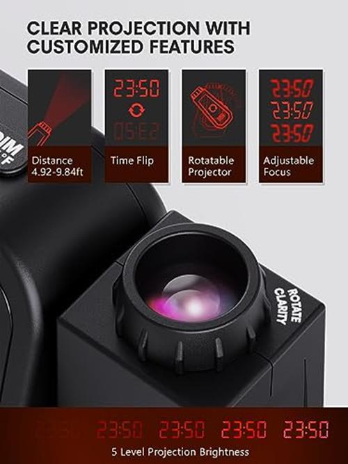 This projection alarm clock is a game-changer! The clear display and adjustable brightness make it easy to read, and the ceiling projection is a cool feature that lets me check the time without moving. The alarm is loud enough to wake me up but not jarring, and I love the customizable settings. Perfect for anyone who wants a functional yet stylish bedroom clock. Highly recommend!