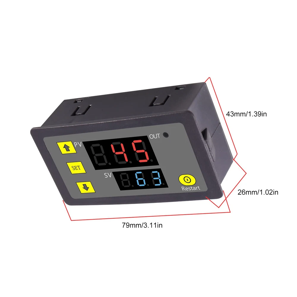 Digital Temperature Controller LED Display Electronic Control Board Temp upgrade Bullet Points: Multiple Modes: With multi-mode work capability, this digital temperature controller is perfect for timing, cycling, and looping. Additionally, it saves your adjustments after 6 seconds, ensuring efficient and accurate temperature regulation Effortlessly Manage Temperatures: Achieve precise temperature control effortlessly with this digital temperature controller. Its button setting and four-terminal wiring make it easy to use, and the small dimensions of 79x42x26mm ensure convenient installation. Advanced Timing and Control: Take advantage of our digital temperature controller's advanced timing and control capabilities, featuring two timing times with a time range of 1 second to 998 hours, and six working modes to choose from. Perfectly tailored for enhanced performance in a range of applications Double Monitoring Screen: Equipped with an onboard double green-red LED display module and responsive tactile button, this digital temperature controller provides precise monitoring Three Timing Modes: Set your customized timing mode in seconds 0-998s, minutes 0-998min, or hours 0-998h with the digital temperature controller's P0—0:T 1 timing second, P0—1:T 1 timing minute, and P0—2:T 1 timing hour settings Upgrade your thermostat game with our digital thermostat control board! Featuring a double LED display and button setting for ease of use. Wait 6 seconds after setting the data for optimal results. Can be used in various applications to meet different needs. Specification: Product name: Digital Temperature Controller Temperature control range: -50-120°C Resolution: 0.1°C at -9.9-99.9, 1°C at other temperature ranges Temperature measurement accuracy: 0.1°C Control accuracy: 0.1°C Hysteresis accuracy: 0.1°C Refresh rate: 0.5s Input powering supply: DC 12V Measurement input: 10K 0.5% Waterproof sensor Output: 1 relay output, 12 20A, 220V 10A Environmental requirements: - 10-60°C humidity 20%-85% Product size: about 7.9x4.3x2.6cm/3.11x1.69x1.02 inches Packing List: 1 x Digital Temperature Controller Note: Due to different lighting and screen settings, the item color may be slightly different from the picture. Due to different manual measurements, please allow a 1-2cm difference in size. 1.You can make a Credit payment via Paypal.Paypal will let you use MasterCard,Visa to pay. 2.Payment should be completed within 5 days after auction closed, or unpaid dispute will be filed for an closing auction.An unpaid case will be filled after 4 days. ● We strive for 100% customer satisfaction ! ● Positive Feedback is very important to us. ● We hope that you contact us immediately BEFORE you give us neutral or negative feedback, so that we can satisfactorily address your concerns. ● We promise to offer the lowest price and high quality produce. Dear buyers : ● Welcome to my store ! ● Your satisfaction is our top goal,we appreciate your patronizing. ● If you have any questions, please contact us before leave negative or neutral feedback, we will try our best to solve the issue to your satisfaction, thanks ! ● If you are satisfied with our service, please rate the details of the transaction (Detailed Seller Ratings) on eBay. ● Please always talk to us via ebay Message. ● We appreciate your business and look forward to growing our e-Bay sales with satisfied customers.