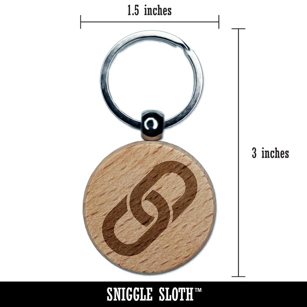 Dije de etiqueta de eslabón de cadena icono grabado en madera llavero redondo