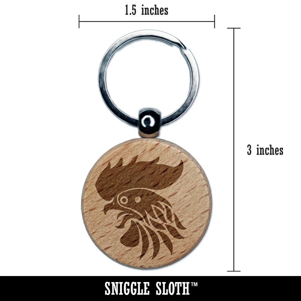 Dije de etiqueta de llavero redondo con cabeza de gallo salvaje grabado en madera