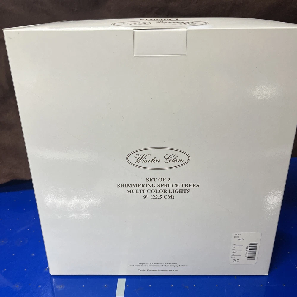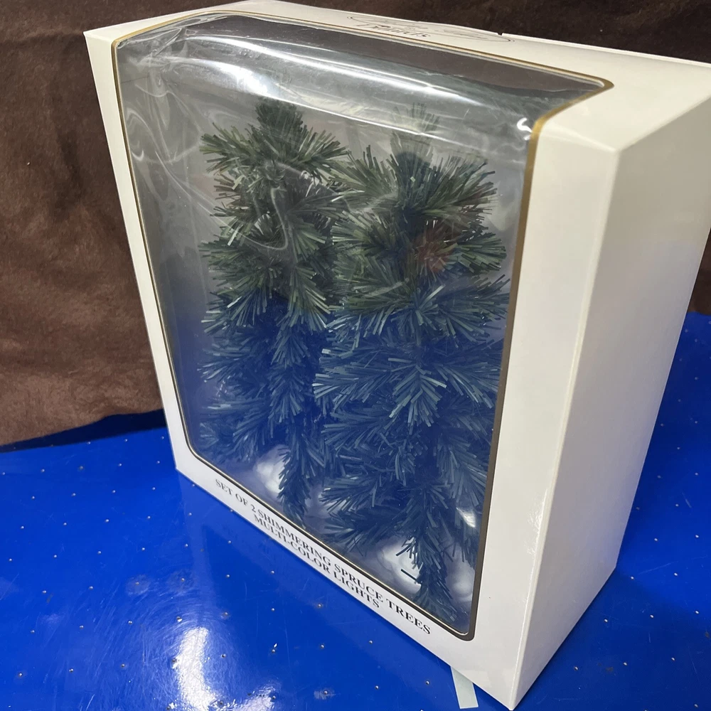 The Winter Glen by Dillard's Christmas Set of 2 Shimmering Spruce Trees Multi Color is a festive addition to any holiday display. Made of ceramic and porcelain, these lighted Christmas trees from the Lemax brand feature a shimmering spruce design that adds a touch of magic to your winter village scene. Perfect for collectors or anyone looking to enhance their seasonal decor, these trees are sure to bring a Christmas spirit to your home during the holiday season.
