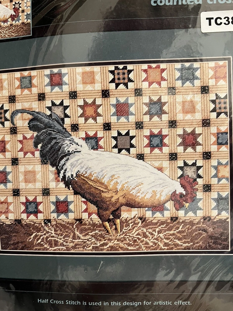 Dimensions 35095 Patchwork Rooster Cross Stitch Kit 14 “x 11” New Kit Farm