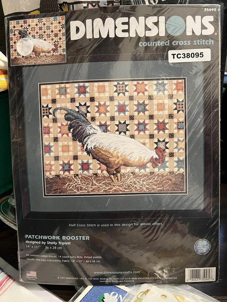 Features: Complete Model: Patchwork Rooster Brand: Dimensions Style: Picture Bundled Items: Kit Format: Framed Picture gtin13: 088677350956 Country/Region of Manufacture: United States UPC: 088677350956 Type: Cross Stitch MPN: 35095 Theme: Rooster/ Chicken/ Patchwork/ Country