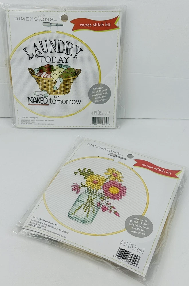 Dimensions Counted Cross Stitch Kits: Flower Mason Jar and Laundry Day NEW Please let me know if you have any questions. I am open to offers!! Feel free to look at other items in my store! Thanks!