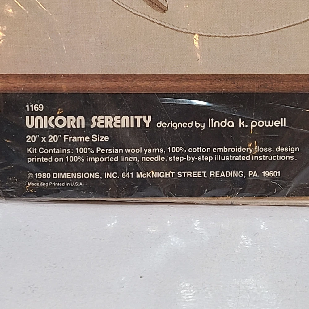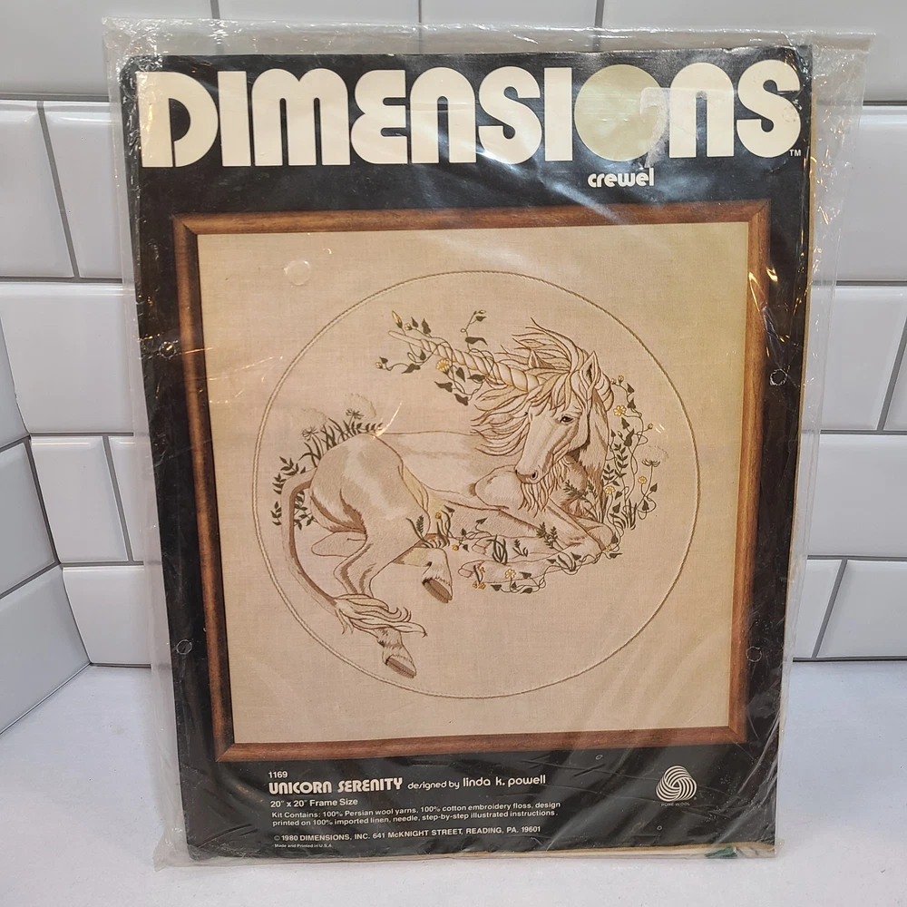 Dimensions Crewel 1169 Unicorn Serenity Embroidery Art Kit Linda Powell 1980 New