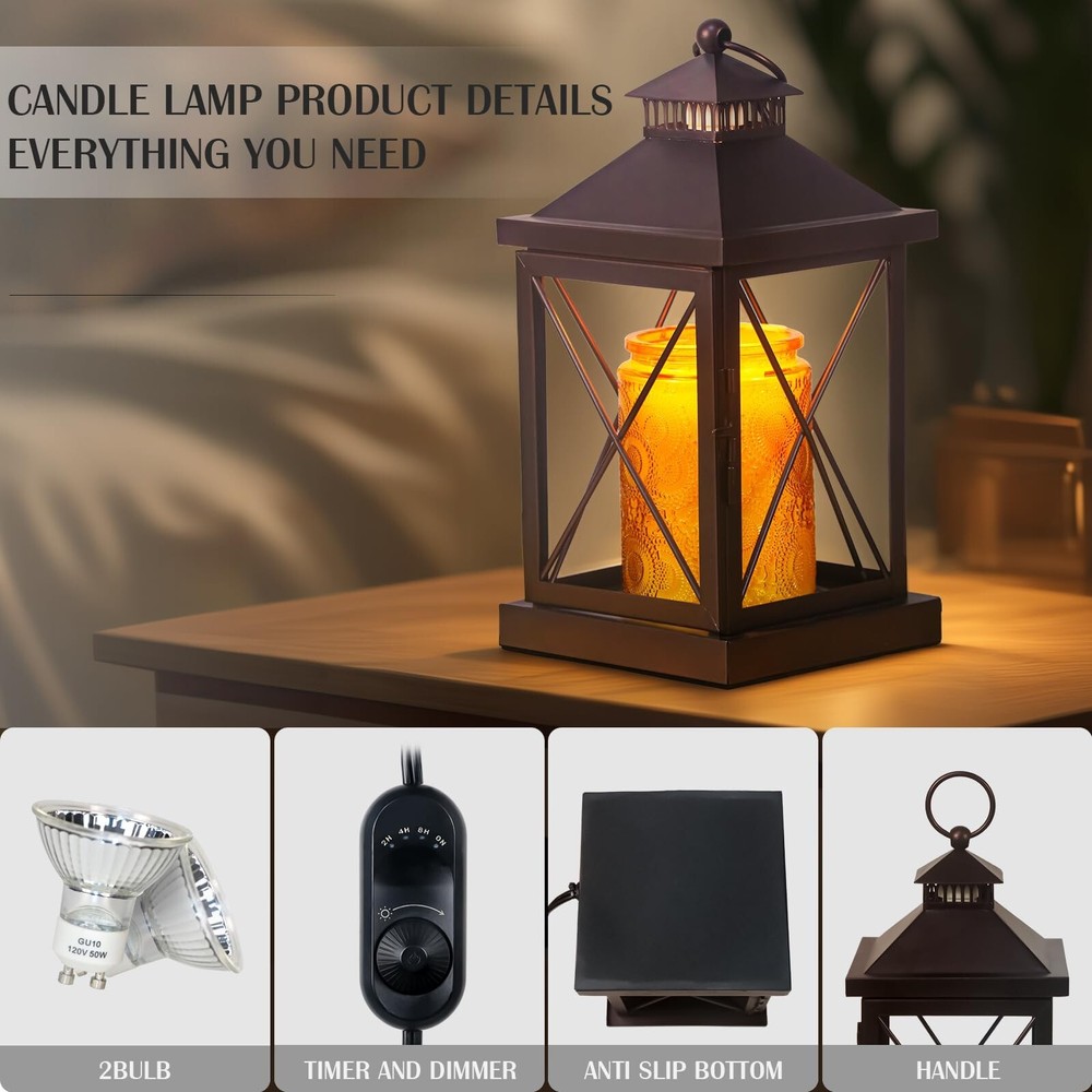 Candle Warmer Lamp with Timer, Dimmable Candle Lamp, Compatible with Small and Large Candles, Vintage Lamp Candle Warmer for Bedroom Home Living Room Decor, Wax Melt Warmer with 2 Bulbs (Coffee) Product Details Color: Coffee Brand: YKOEAROMA MPN: ETX UPC: Does not apply EAN: Does not apply Color: Coffee Material: Metal Brand: YKOEAROMA Product Dimensions: 5.5"L x 5.5"W x 11.25"H Finish Type: Unfinished Product Dimensions : 5.5 x 5.5 x 11.25 inches; 1.68 Pounds Item model number : ETX Date First Available : October 30, 2024 Manufacturer : YKOEAROMA Country of Origin : China Customer Reviews: 4.7 4.7 out of 5 stars 12 ratings Color: Coffee Material: Metal Brand: YKOEAROMA Product Dimensions: 5.5"L x 5.5"W x 11.25"H Finish Type: Unfinished Item Weight: 1.68 Pounds Number of Pieces: 1 Theme: Festival Mounting Type: Tabletop Manufacturer: YKOEAROMA Occasion: Casual, Relaxation, Personal Indoor/Outdoor Usage: Indoor Part Number: ETX1800 Item Weight: 1.68 pounds Country of Origin: China Item model number: ETX Item Package Quantity: 1 Style: Art Deco Finish types: Unfinished Batteries Required?: No Date First Available: October 30, 2024 Fully Dimmable Warmer Lamp candle wax melter Lamp features a dimming knob, which allows for infinite dimming. You can control the speed of candle melting by dimming light,thus controlling the scent concentration of the scented candle. Candle Warmer With Timer vintage classic design that is very stylish. Provides 3 timing duration options(2H/4H/8H) to accompany you safely to sleep in a quiet night. Safe, Environmentalt Candle warmer lamp use of dissolved wax lamps eliminates the need to light your candle. Not only can make the candle fragrance more attractive, but also can do no flame & smoke free to prevent accidents caused by flames. You can use it safely at home. Atmosphere EnhancementCandle warming lamp for jar candles create a soothing ambiance, perfect for yoga, bathing, sleeping, or reading. These versatile candle burner electric lamp double as stylish decorations for bedrooms, living rooms, and more. The wax warmer lamp is functional, attractive, and safe, making it a versatile choice. BEST GIFTS The elegant look and practical functionality of these candle lamps make them ideal birthday gifts for women and mothers day gifts for moms. They are perfect for Mother's Day, Valentine's Day, Thanksgiving, Christmas gifts or other special occasions.