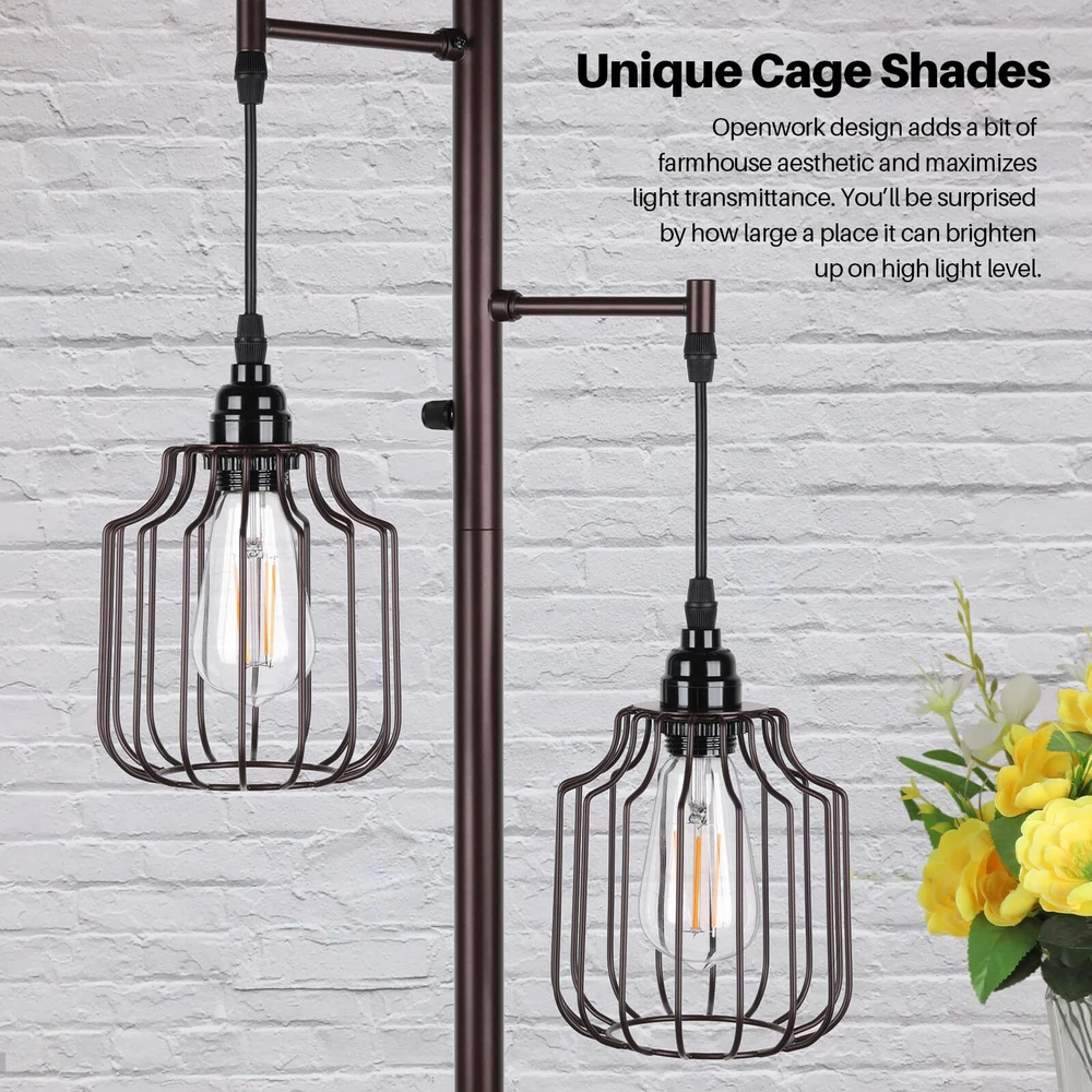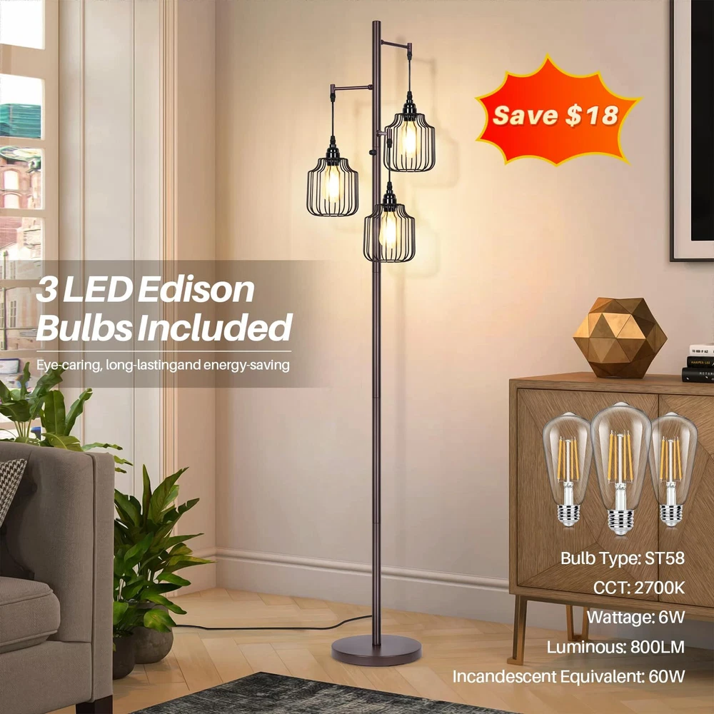 【0%-100% Stepless Dimming】With a built-in dimmer switch on lamp pole, the floor lamp offers full range of brightness from 0% to 100%, allowing you to set the tone of your room the way you like it. The dimmer switch is at the perfect spot where you don’t have to bend down to reach when standing and also don’t have to get up for brightness changing or turning the lamp on/off when sitting on bed or couches. 【3 x 800 lumens LED Bulbs Included】It comes with 3 ST64 LED Edison light bulbs so the tall floor lamp is ready to go and illuminate your space after 5-minute assembling. Each LED bulb takes only 6W energy to offer you superb brightness equivalent to 60W incandescent bulb. It emits 2700K warm white glow that matches well with the brown floor lamp. Also there is no need for frequent bulb replacement for LED is known for its long-lasting feature. 【Bright Tall Lamp with 3-Head Design】The living room lamp measures 68” high and has three lamps of varying heights and angles to ensure a wide circle of illumination. 【Exceptional Quality】Designed with weighted lamp base and sturdy metal pole and branches, this modern floor lamp stands stably and does not wobble. Not to worry about it being toppled over by kids or pets. The whole corner lamp is covered with a protective brown finish that keeps it from fading and shines as always. 【Industrial Home Decor】If you are looking for something to bring a modern farmhouse aesthetic to your home, this tree floor lamp would be an excellent choice. It’s a stunning example of industrial-inspired design with statement-making appearance. Ideal standing lamp for living room, bedroom and office.