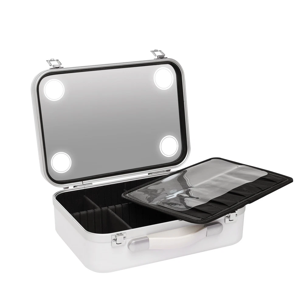 Application This product is suitable for storing cosmetics and skin care products, as well as jewelry, such as necklaces and earrings. Specifications Material: Aluminum, Sponge Color: White Battery Capacity: 2000mAh Led Light: Warm Yellow Light 6500k, Natural Light 4600k, Cool White Light 3500k Product Size: 34*24*12cm/13.4*9.4*4.7inch Net Weight: 1.6kg/3.52lbs Gross Weight: 1.8kg/3.97lbs Package Size: 38.6*30.5*16.20cm/15.2*12.01*6.38inch Package Included 1*Cosmetic Box 1*Data Cable 1*Brush Plate Notes Please allow the slight color difference caused by the shooting light and 1-3cm error due to manual measurement, and make sure you do not mind before you order. Dimmable LED Light Mirror Women Cosmetic Bag Travel Makeup Case Organizer Large Makeup Case w/Dimmable LED Bulbs and Tilt Mirror Lighted Cosmetics Organizer Case Specifications Material: Aluminum, Sponge Color: White Battery Capacity: 2000mAh Led Light: Warm Yellow Light 6500k, Natural Light 4600k, Cool White Light 3500k Product Size: 34*24*12cm/13.4*9.4*4.7inch Net Weight: 1.6kg/3.52lbs Gross Weight: 1.8kg/3.97lbs Package Size: 38.6*30.5*16.20cm/15.2*12.01*6.38inch Package Included 1*Cosmetic Box 1*Data Cable 1*Brush Plate Application This product is suitable for storing cosmetics and skin care products, as well as jewelry, such as necklaces and earrings. Notes Please allow the slight color difference caused by the shooting light and 1-3cm error due to manual measurement, and make sure you do not mind before you order. Description People’s pursuit of beauty is endless, and a good product often enhances people’s feelings. This cosmetic box is made of aluminum, which is durable and easy to carry. In addition, the compartmented storage space and the buckle allow items to be placed more securely. Warm color and unique design bring people a good mood for the day. With it, you can enjoy the make-up process to your heart's content. Key Features Premium Material: The product is made of aluminum, which is strong and durable, can be used for a long time, and has a good guarantee of quality. Thoughtful Design: The product comes with a mirror and dimmable LED lights by touching the switch. Long press to adjust the light brightness and short touch to adjust the light color temperature. Meet the needs of different scenes and provide a better makeup process. Easy to use: The built-in 2000 mAh high-capacity battery has a long life span. The included type-c charging cable is compatible with many charging devices. Dual use of battery and plug-in power makes it easy to move around. Safe to Use: The display at the switch button is red when charging and turns green when fully charged. The built-in charge protection system can automatically limit the current after a full charge to avoid overcharging. Fully Featured: The product can not only make up but also meet people’s needs to reapply at any time. It can store cosmetics and skin care products. The equipped lamp can also provide emergency lighting to realize the multi-purpose use of one object. Large Capacity: The cosmetic box has a large storage space, which can accommodate cosmetics and some skincare products at the same time to avoid disorderly items. Real Experience: The cosmetic box has a built-in high-definition large mirror, equipped with a three-color LED light source to restore the real makeup, pay more attention to details, and bring people a more natural and real experience. Ideal Gift: A practical and beautiful cosmetic box is something that every girl who pursues beauty will love. It is a wonderful gift for girlfriends, family members and colleagues. Professional Service: Adhering to the purpose of making everyone beautiful, we will always listen to customers’ opinions and lay a solid foundation for providing good service. Details Support Feet: The bottom of this item has support feet that not only make it stand more stable but also prevent item wear and tear caused by direct contact with the floor. Lock Buckle: The buckle keeps the same color as the cosmetic case not only looks fantastic but also keeps the case locked up to prevent cosmetics from falling out. Telescopic Handle: The handle adopts an artificial design to reduce the burden of the opponent and reduce fatigue, and it’s also convenient to carry. Partition: It can freely adjust the position of the partition according to the volume and shape of its own cosmetics, and keep the internal cosmetics in order at all times. Movable Brush Plate: The removable brush board is equipped to place cosmetic brushes and other items separately to ensure neatness and protect the mirror at the same time. Payment Delivery details Terms of sales About us Contact us Payment We accept ebay payment 。 Fees such as import duties, taxes are not included in the item price or shipping costs. These charges are the buyer's responsibility. Delivery details Shipping: 2-9 working days to: USA Terms of sales We maintain high standards of excellence and strive for hundred percent customer satisfaction. Feedback is very important to us. We hope that you contact us immediately before you give neutral or negative feedback, so that we can address your concerns. It is impossible to address issues if we do not know about them! About us Your satis faction is our ultimate goal. We work hard to earn your trust and future business. Our certified technicians have tested each item before shipping. The unit comes with 1 year limited warranty on all manufacturing defects. a) If you receive a defective item, you may return it or ask for a discount. Please contact us within 14 days after you receive the package. b) What you returned must be intact and in its original packaging as re? u. Customer is responsible for shipping costs of the returned item. c) We will cover the cost of shipping back t with the shipping rate indicated in the registration page. We will send you a new unit or refund the full payment you paid. Thank you. Contact us Business Hour Business Hour:
