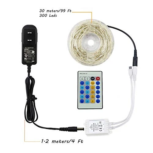 Number of Batteries: 1 CR2 batteries required. Material: Copper Color: Blue Item model number: LD1030L Item Weight: 0.5 Pounds EAN: Does Not Apply Batteries Included: No Light Source Type: LED Type: Does Not Apply Water Resistance Level: Water Resistant MPN: Does Not Apply Number of Items: 1 Part Number: LD1030L Style: Modern Finish: copperizing Number of Light Sources: 300 Light Color: Blue Item Width: 3 Controller Type: Remote Control Item Height: 3 Theme: Holiday,Wedding UPC: 190907259059 Size: 99FT 300LED gtin13: Does Not Apply Form Factor: flexible copper wire string with evenly spaced blue LED bulbs Brand: Does Not Apply Item Length: 5 Power Source: AC Adapter Powered Seasons: autumn, winter, spring Product Dimensions: 5 x 3 x 3 inches White Brightness: 10 Lumens Batteries: 1 CR2 batteries required. Special Feature: Dimmable Special Features: Dimmable Is Discontinued By Manufacturer: No Control Method: Remote Indoor Outdoor Usage: Outdoor, Indoor Item dimensions L x W x H: 5 x 3 x 3 inches Voltage: 4.5 Volts Bulb Base: GX6.35 Manufacturer: Does Not Apply Color Temperature: 2700 Kelvin Occasion: Easter, Wedding, Christmas, Birthday, Halloween, Thanksgiving Included Components: 100ft 300LED Copper String Lights, 1 Remote, 1 Controller, 1 AC P