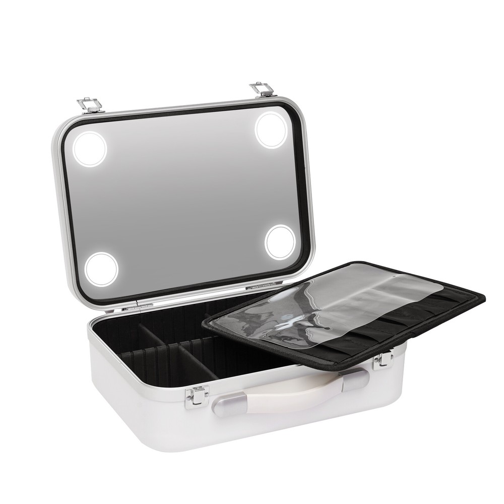 This makeup case is a game-changer! The dimmable LED lights are perfect for any lighting condition, and the spacious interior keeps all my cosmetics and jewelry neatly organized. The sturdy aluminum build feels premium, and it’s surprisingly lightweight for travel. Love the three light temperature options—ideal for flawless application every time. The included brush plate is a thoughtful touch. Highly recommend for anyone who wants a stylish, functional, and travel-friendly beauty organizer!