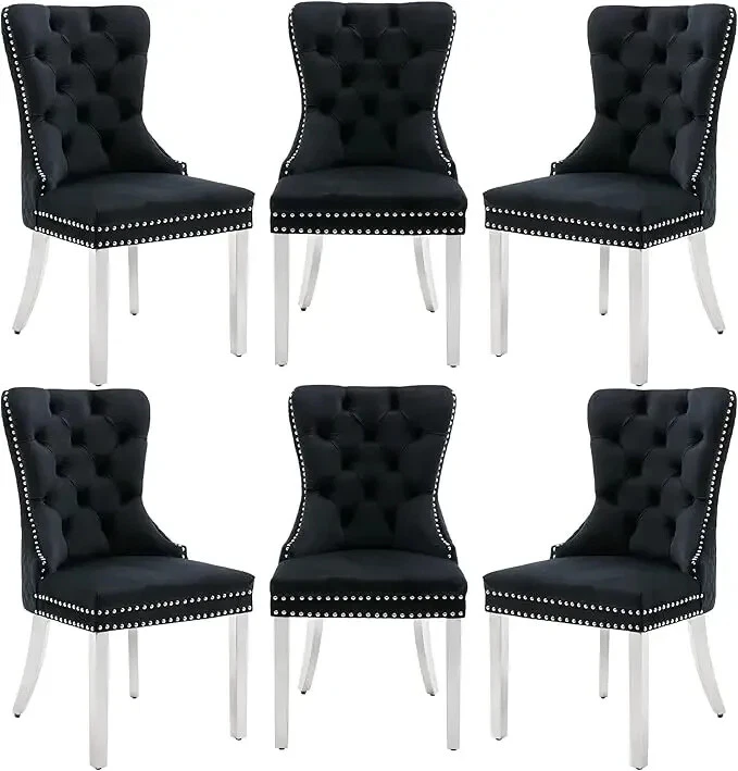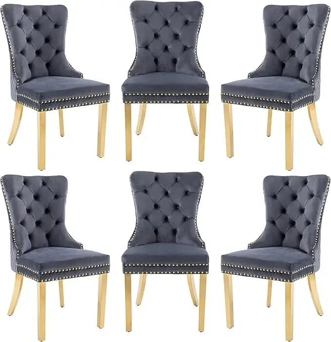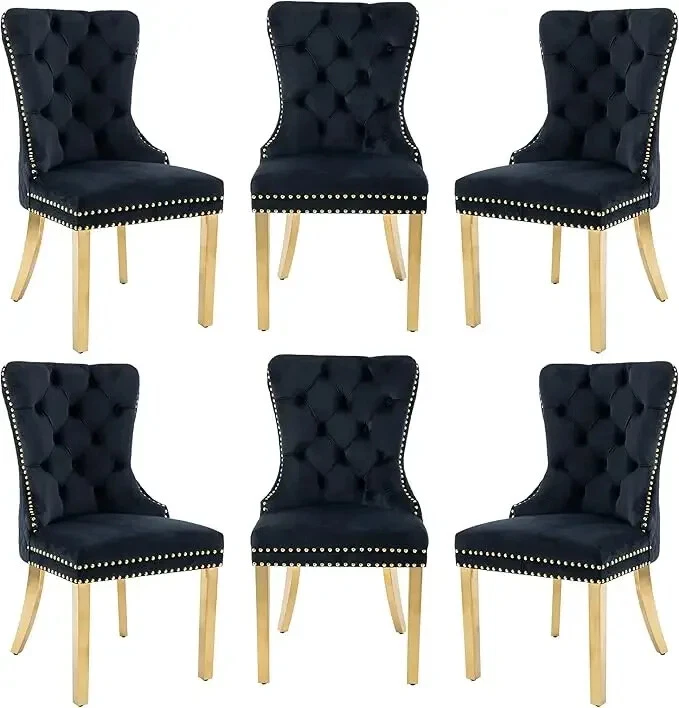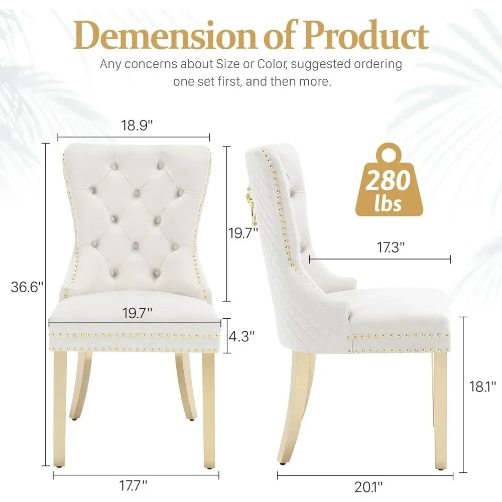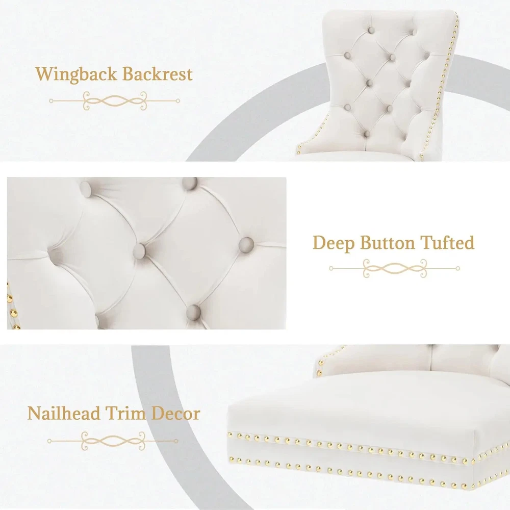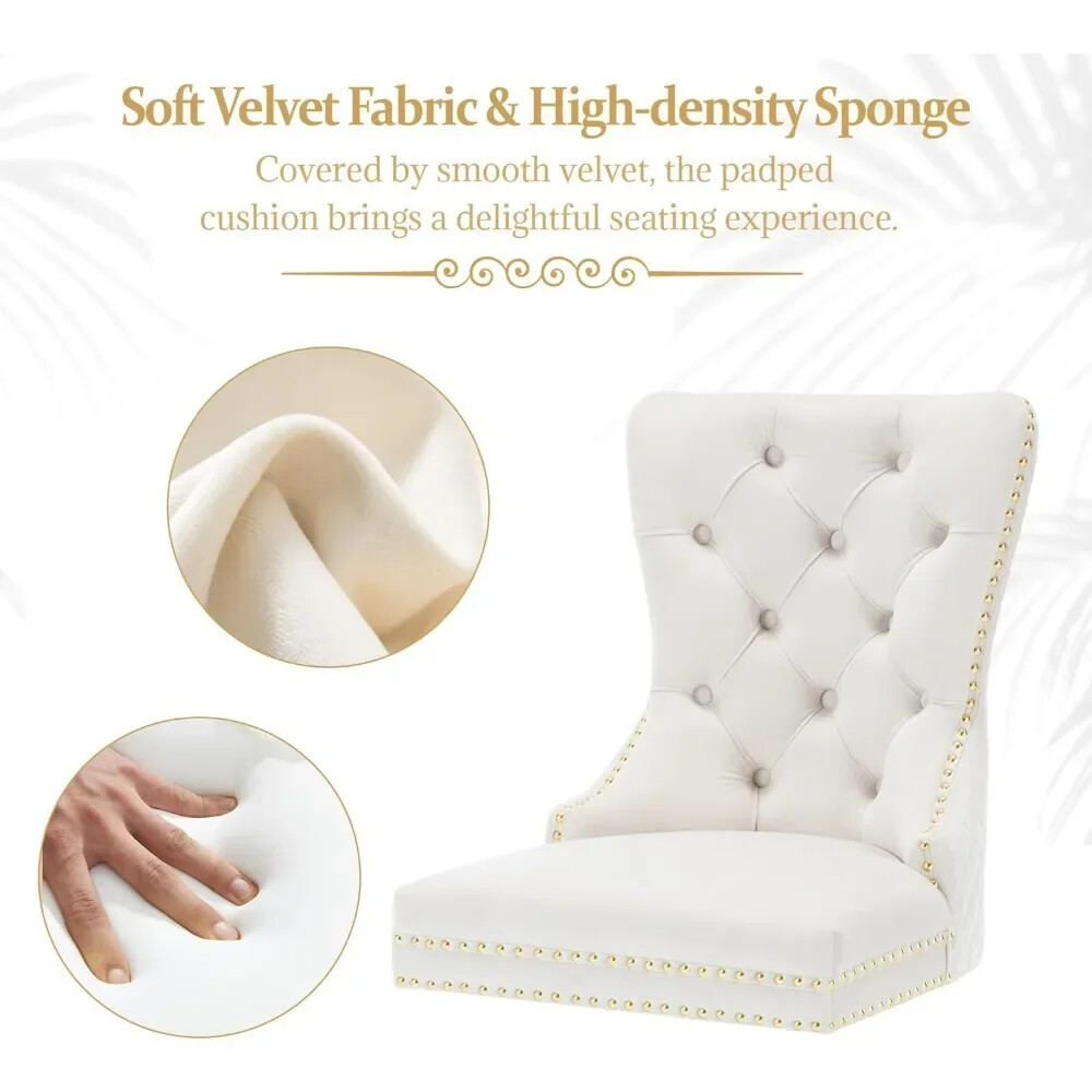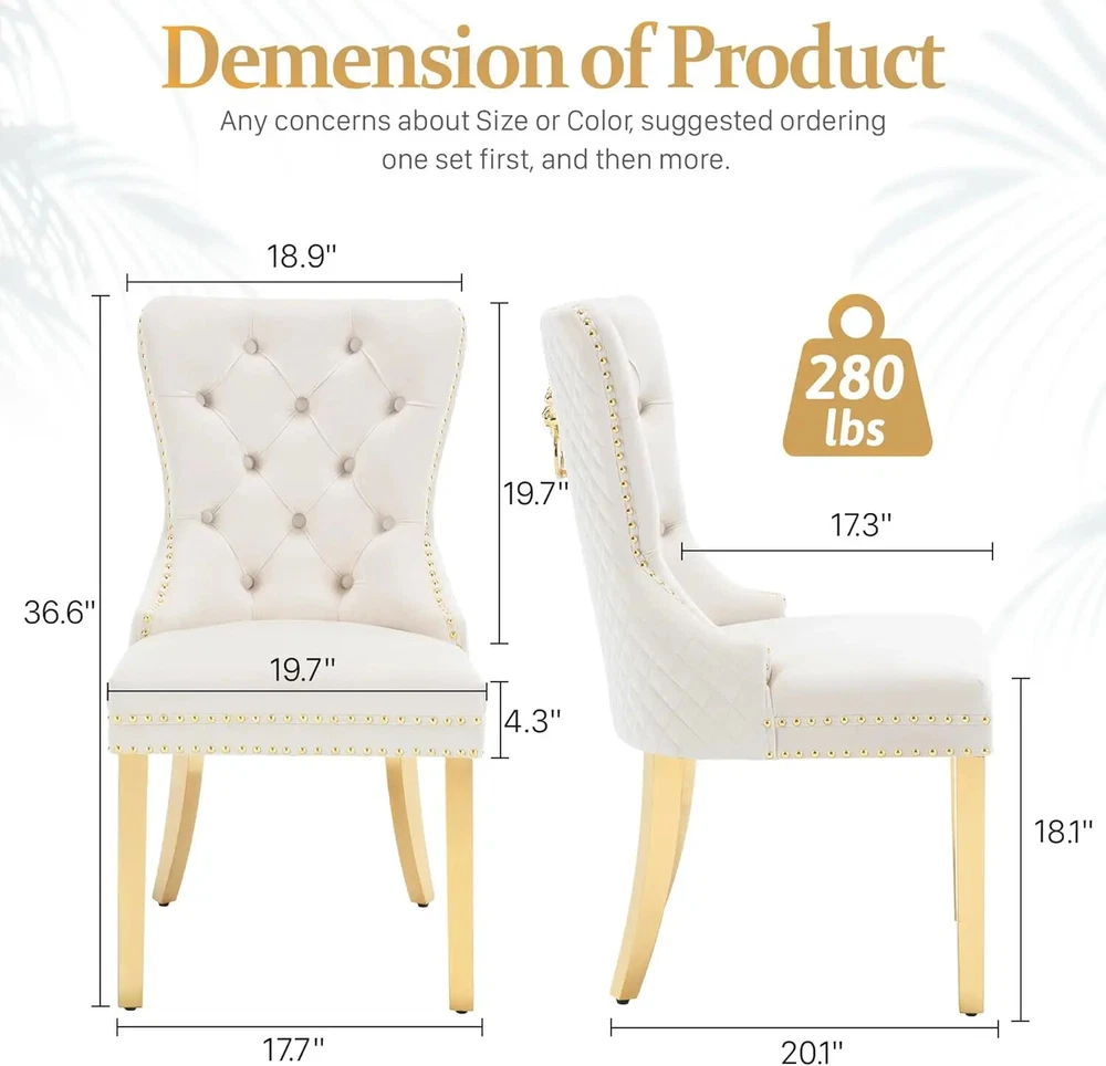 About this item Ergonomic High Back Chair: The comfortable dining chairs feature a curved high back that offers strong and comfortable support for your spine. With decorative rivet insets around the cushion and back, it exudes a sense of elegance and sophistication Luxurious Velvet Fabric: These wingback dining room chairs are crafted from premium velvet that is durable, gentle to the touch and will not fade. The chairs are filled with high-density sponge in the back and seat, providing ample and comfortable support Reliable Construction: The kitchen dining chair features a solid wood seat frame and metal legs, ensuring safety and a weight capacity of 280 pounds. Its adjustable foot pads allow for easy height adjustment to maintain balance on uneven floors and avoid scratches Rich Selectivity: This classic dining chair is available in various colors. It can be easily matched to different house styles and used in the living room, dining room, family room, study or library. It is a wonderful choice for your home decor and house-warming gift Easy Assembly & Notice: Assembling this upholstered dinner chair is a breeze with clear instructions, accessories, and tools. It can be assembled in 15 minutes, easy and labor-saving. Notice: Please unzip the seat bottom to take out all the legs and screws before installation