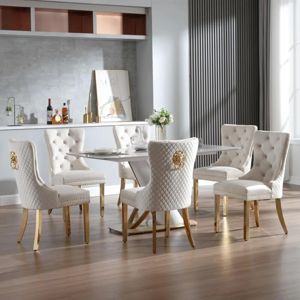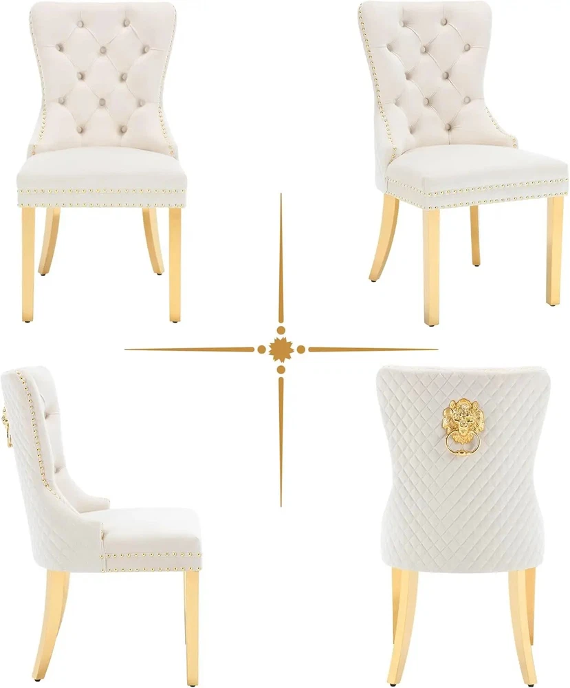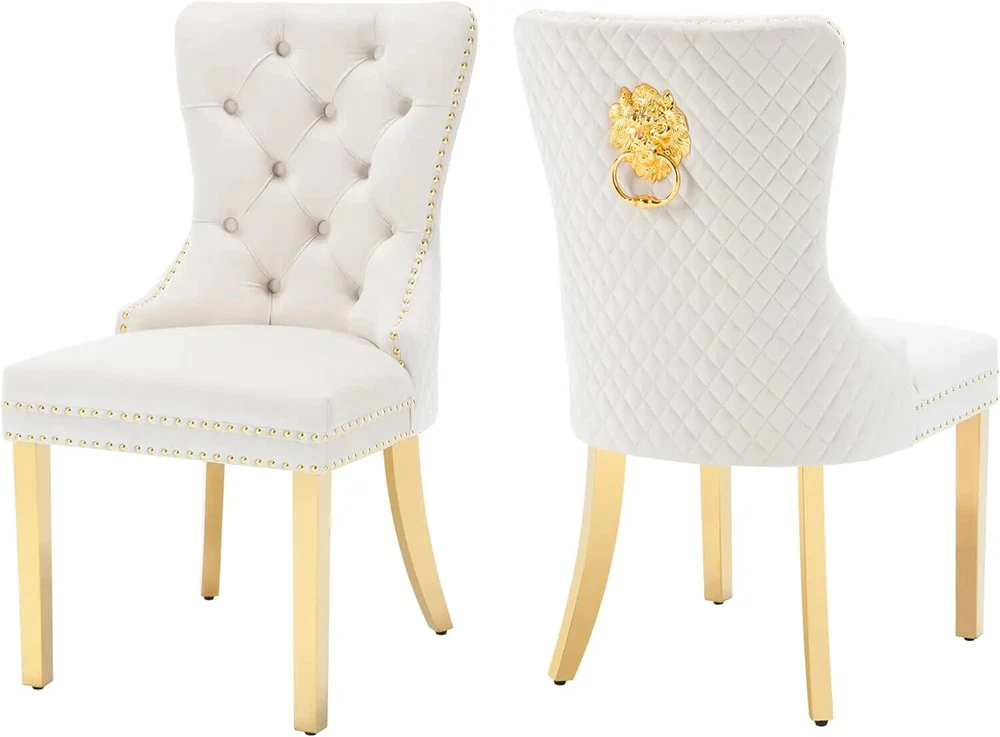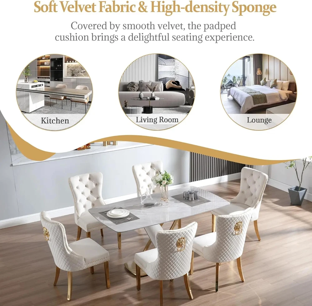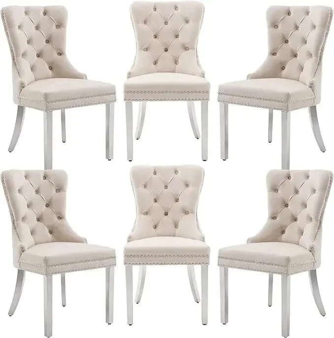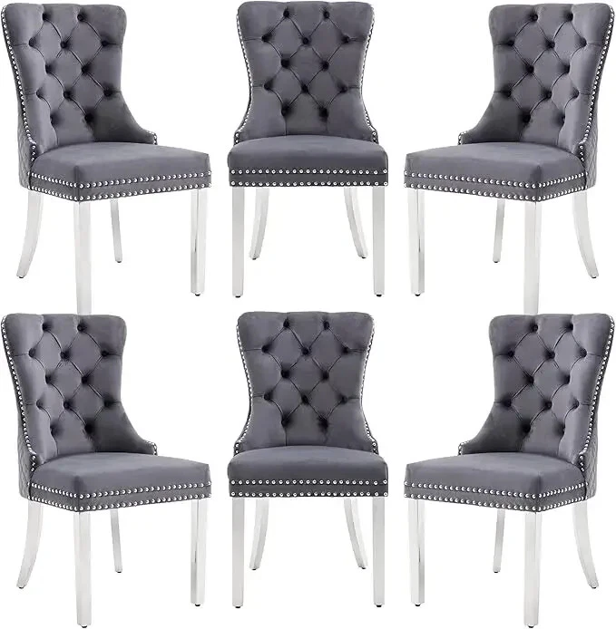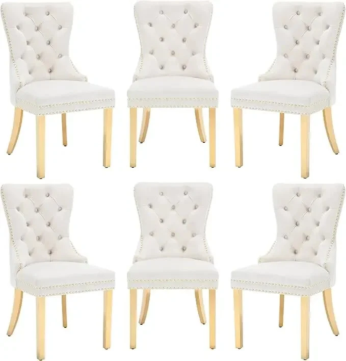 About this item Ergonomic High Back Chair: The comfortable dining chairs feature a curved high back that offers strong and comfortable support for your spine. With decorative rivet insets around the cushion and back, it exudes a sense of elegance and sophistication Luxurious Velvet Fabric: These wingback dining room chairs are crafted from premium velvet that is durable, gentle to the touch and will not fade. The chairs are filled with high-density sponge in the back and seat, providing ample and comfortable support Reliable Construction: The kitchen dining chair features a solid wood seat frame and metal legs, ensuring safety and a weight capacity of 280 pounds. Its adjustable foot pads allow for easy height adjustment to maintain balance on uneven floors and avoid scratches Rich Selectivity: This classic dining chair is available in various colors. It can be easily matched to different house styles and used in the living room, dining room, family room, study or library. It is a wonderful choice for your home decor and house-warming gift Easy Assembly & Notice: Assembling this upholstered dinner chair is a breeze with clear instructions, accessories, and tools. It can be assembled in 15 minutes, easy and labor-saving. Notice: Please unzip the seat bottom to take out all the legs and screws before installation