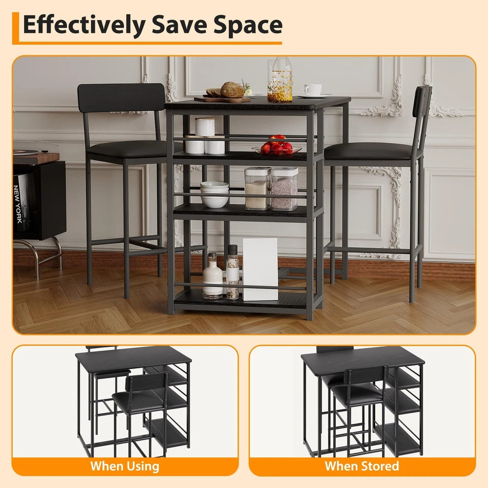 About this item Space Saving Design for Compact Living: Perfect for studio apartments, cozy breakfast nooks, or open plan spaces, this small dining table for 2 features a sleek, compact design. The chairs tuck neatly under the bar table to save space, ideal for tiny homes, lofts, or small kitchens. Table Size: 36"L x 19.6"W x 36"H; Chair Size: 14.5"L x 16.5"W x 37.4"H. A modern, functional solution for intimate dining areas without compromising on style. Comfortable Seating for 2 with Ergonomic Design: This small kitchen table for 2 includes 1 high top kitchen table and 2 chairs with curved backs for lumbar support and thick padded seats more comfortable than traditional wooden chairs. Enjoy romantic dinners, casual brunches, or morning coffee in comfort. The bar height design adds a contemporary touch, enhancing small space dining experiences for small households Durable & Stable Construction for Daily Use: Built to last, the bar table and chairs feature a robust steel frame and high quality MDF board with a scratch resistant finish, withstand daily meals, family game nights, and gatherings. The sturdy structure ensures reliable stability, making it a practical choice for busy homes. Perfect for indoor use in dining rooms, kitchens, or home offices. Ample Storage & Easy Maintenance: Stay organized with 3 built in storage shelves on the bar height table, ideal for storing tableware, snacks, or cookbooks. The waterproof, anti corrosive surface wipes clean effortlessly perfect for quick cleanup of spills, sauces, or dust. Durable and low quick assembly hassle free upkeep. Easy Assembly & Maintenance: Comes with clear instructions and all tools needed for easy setup. The waterproof coating and smooth finish simplify maintenance, ensuring the set stays in pristine condition. A must have for busy individuals or renters seeking a functional, easy to manage bar table with stools that balances convenience and durability. Product Description Built-in lockers Three spacious storage shelves underneath the dining table with frames made of thick metal and high quality particle board keep your table organized and clutter free! Large, sturdy tabletop Featuring a heavy-duty steel frame and high-quality MDF tabletop to ensure long-lasting durability and stability, this bar table set has a large tabletop that provides plenty of room for 2 to 4 people. Enjoy a good time Comfortable upholstered seats Upholstered barstools with ergonomically curved backs and thick cushions provide exceptional comfort, ideal for romantic dinners, early morning coffee or remote work. Payment Delivery details Terms of sales About us Contact us Payment We accept payment either via PayPal or any of the following credit cards; Visa, MasterCard, Discover, and American Express. Delivery details 1. We will delivery out at the handing time when we receive the payment. 2. The delivery time is 3-5 business days to US by usually time.The parcel maybe delay 1-2day of the weekend.Due to the bad weather,Holidays,Hot Season ect.the parcel maybe delay,If you have any problems,mssage us,we will try our best to solve it. 3. We ship to your eBay address. Please make sure your eBay address is correct before you pay. 4. If you want to change the shipping address,message us before our send out. Terms of sales If you are not satisfied with the item for any reason, please do not quick to leave negative/neutral feedback even open request and case without any communication with us. We devote ourselves making EVERY CUSTOMER in 100% Satisfactory and resolve any problem. Thank you for your understanding and recognition,we are always leave positive feedback to all our customers. About Reply: All replies will be sent to your email box, if you do not get response within 24 hours (Sat. & Sun. excluded) please check your eBay My Messages in case that our emails will be filtered automatically by your settings. About us automobilee-01 is a brand new store but we are one of North America’s top online suppliers of specialized, high-quality aftermarket online retailers and suppliers, committed to developing new markets. We primarily offers tool sets, auto parts, home goods, etc..With over 20 years of product selection and manufacturing experience, we delivers unparalleled quality, value, service and satisfaction. Our highly-trained, professional staff offer in-depth knowledge and personalized assistance for customers worldwide. Providing our customers with a simple, hassle-free experience with best-in-class customer service is more than a goal. Contact us Any problem please rest assure to contact us by eBay message first. We will reply you as soon as we can. We will deal with it within 24hs on working days. Brand Unbranded Set Includes Dining Table, Chairs Room Dining Room MPN Does not apply Department Adults Shape Rectangular Mounting Freestanding Assembly Required Yes Features Space Saving, Sturdy and Durable, with 2 Upholstered Chairs, Large Sturdy Tabletop Number of Items in Set 3 Seating Capacity 2 Style Contemporary/Modern Material Metal, MDF Board, Artificial Leather Model Dining Table Set Table Dimensions 36” L x 19.6” W x 36.1” H Chair Dimensions 14.5” L x 16.5” W x 37.4” H Number of Shelves 3 Seat Height 25.5 in Manufacturer Warranty 5 Years