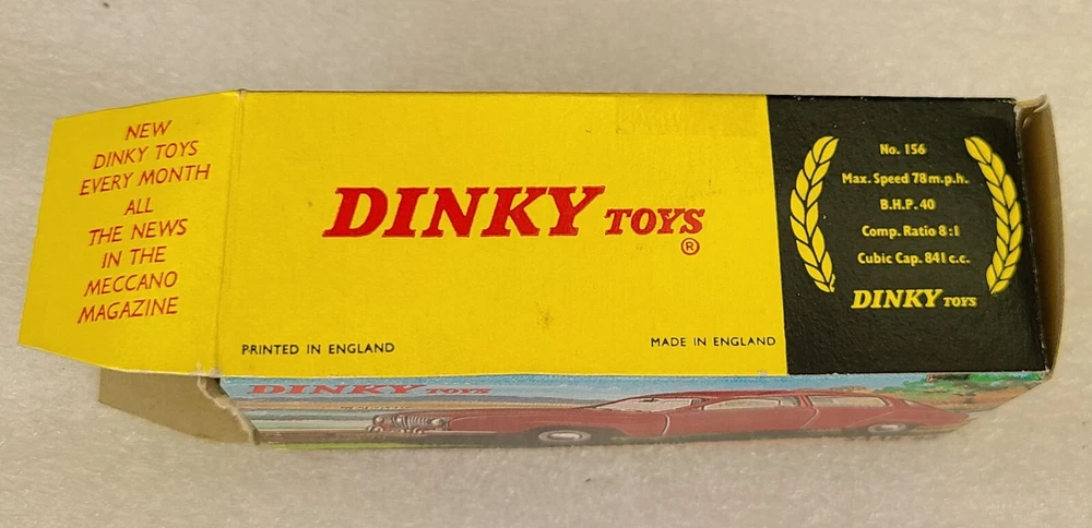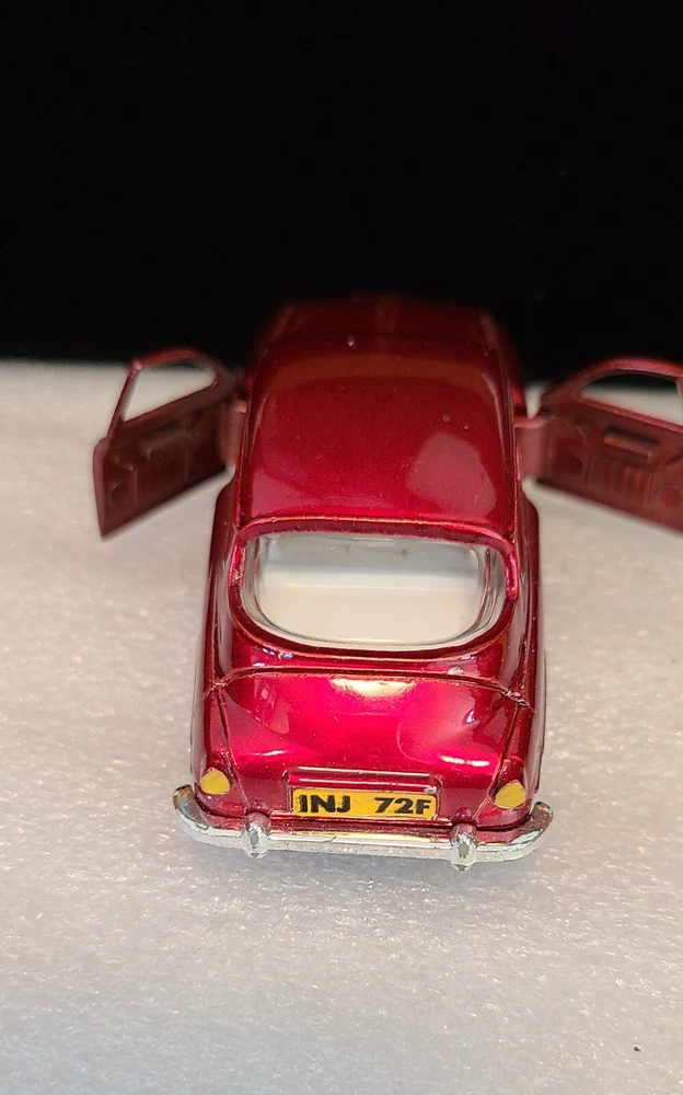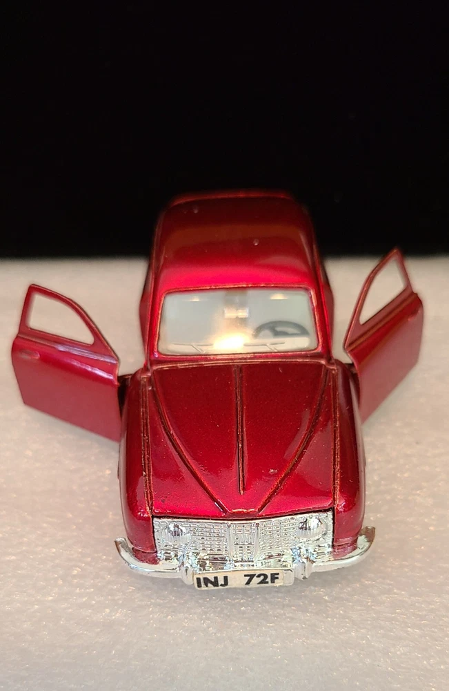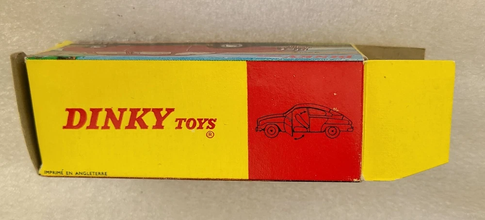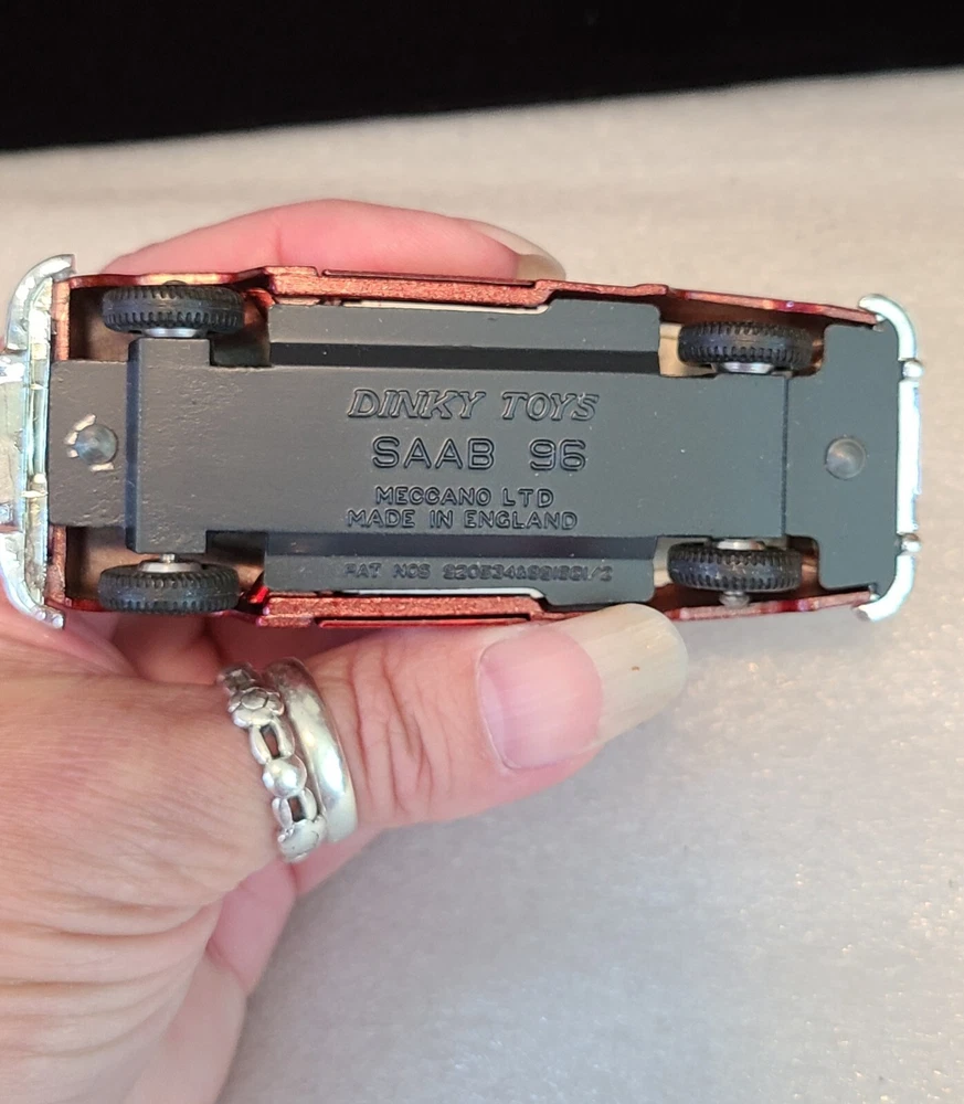 Dinky 95 Saab die cast car, No. I56, with opening front doors and tipping seats. Red paint in very good condition. Original box included.