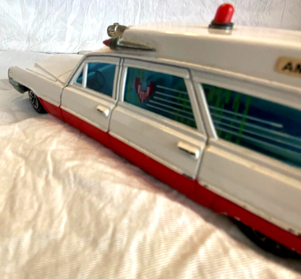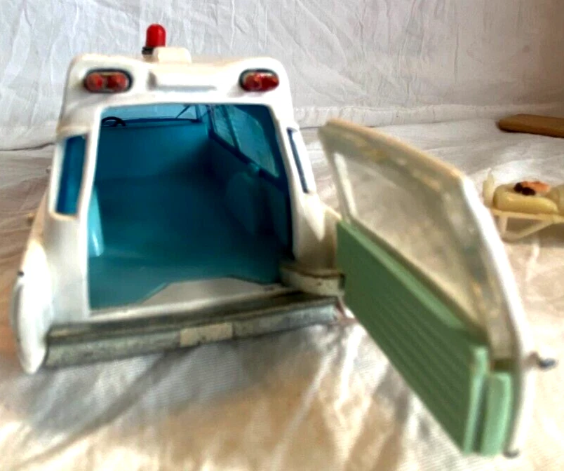 Hey Dinky Toy Lovers, Here is a must have for your collection. In the 1970's Dinky Toys decided to manufacture this 1973 Superior Criterion Rescuer Ambulance on a Cadillac Chassis, no suspension, dummy beacon, one-piece molded plastic wheels and tires, 4-spoke rims, with blue tinted windows. It is a Replica of Ambulance - Superior Coach Corporation (USA). It is 1:43 scale. You already know Dinky Toys are made in England. As always Dinky Toys makes awesome Toys & this is no exception. It's made of Diecast Metal & although it's preowned, this one is in very good condition. Unfortunately, there is no box with it. The back door opens to reveal a patient on a stretcher that comes out, so realistic, right. The license plate reads, "65-441-H" & I'd love to know it's history, but I do know it is Ref. #288C. Don't miss out on this offer if you're a Dinky Toy, Ambulance or just any type of Toy Collector. Smoke Free Environment Stored for 25+ years (Seller Cat.#0343) Ref. #288 (A), 1971, dummy beacon; Ref. #288B, 1972, no suspension, dummy beacon, one-piece molded plastic wheels and tires, 4-spoke rime; Ref. @#288C, 1973, as previous toy, with blue tinted windows;