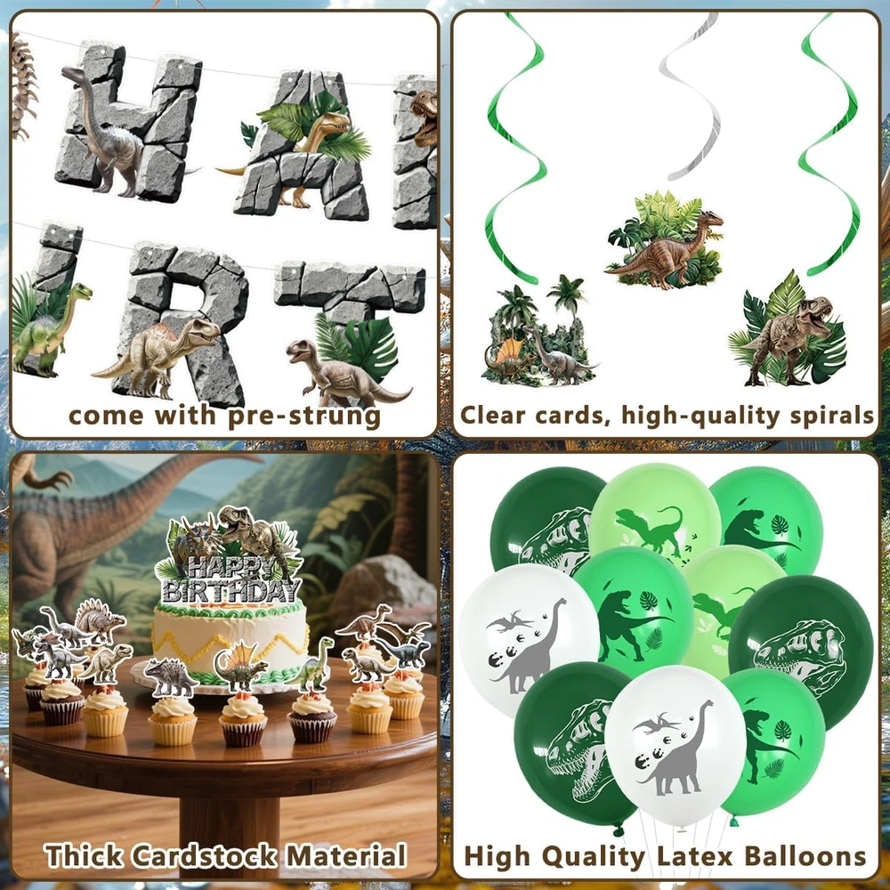 Store New Arrivals Add to Favorite View Feedback Contact Fast deliveries to the customer's home Quality customer service John Make the customers happy! Dinosaur Birthday Party Decorations Set for Boys, Dino World Themed Party Decorations Include Banner, Hanging Swirls, Balloons, Cake Toppers for Kids Description Value Package: this all-in-one set of dinosaur birthday decorations includes 1x dinosaur birthday banner, 1x dinosaur tablecloth, 6x dinosaur hanging swirls, 12x dinosaur cake toppers, 20 dinosaur latex balloons with each color of 4; Abundant accessories to decorate the dinosaur birthday party, and join the party with friends Reusable & Durable: dinosaur table covers are made of PE material, waterproof. Dinosaur banner, hanging swirls, and cake toppers are made of high-quality paper that is sturdy and tear-resistant. Dinosaur party decorations are all made of safe and quality materials and are reusable Easy to Use: transform your space in minutes with our dinosaur decorations kit. The dinosaur birthday party banner comes pre-assembled; take a little bit of time to hang the banner decoration, lay out the tablecloth, add the cake toppers, and inflate the balloons, helping you create a fun dinosaur theme quickly and enjoy more time for party memories Applicable Occasions: the dinosaur party supplies is very suitable for dinosaur themed parties, boy birthday decorations, dinosaur baby shower parties, jungle safari theme birthday party decorations, classrooms, dinosaur birthday party supplies, dino birthday decorations, science themed events, and family gatherings, daily use, and any other celebrations Dinosaur Themed Design: these dino party decorations feature a lot of realistic ancient dinosaurs and jungle safari elements. With its great design, it is sure to be loved by all children The dinosaur party decor is the perfect addition to your party; it can be paired with any other party decor. They can also be paired with your dinosaur theme birthday party decorations, dino party supplies, and more celebration events for dinosaur fans. Our complete set of decorations ensures every detail contributes to the festive vibe. You'll have a perfectly themed party that sparks joy and saves you precious planning time. Item model number TB0032-25-lq-dinosaur-us Unit Count 1.0 Count Color Green Pattern Dinosaur Product Dimensions 6.5 x 6.5 x 0.71 inches Material Latex, Paper, Plastic Item Weight 9.1 ounces Theme Dinosaur Manufacturer recommended age 4 years and up Occasion Dinosaur Included Components Tying Tool ABOUT US We offer the best prices around on high quality products. Our E-store includes media such as books, movies, music and games while offering electronics, toys, sporting apparel, clothing, tools, general home, garden items and more. SHIPPING We are always working hard to ensure your package arrives as soon as possible. Please understand that some factors like weather, high postal traffic, and the performance of shipping companies are outside of our control. We offer free shipping to the lower 48 states and ship within 2 business days of payment, usually sooner. We do not accept P.O. Boxes. Please provide a physical address. For shipping outside of the continental USA, we only use eBay's Global Shipping Program. The item is shipped to KY and then sent to the rest of the world. International customers are responsible for all duties and taxes. Continue to 'check out' to calculate costs for shipping the item to your country. Messages regarding eBay's Global Shipping Program MUST be directed at eBay EXCLUSIVELY. RETURNS We offer a 30-Day Return Policy on items in which you are not completely satisfied with. You have the option of a full-refund or an exchange of the item. No returns are available on items shipped outside of the USA PAYMENT We accept PayPal. CONTACT US This page content is yet to come Please ad us to your favorite seller and visit again later Thank You CUSTOMER SATISFACTION We try our very best to make sure every customer is completely satisfied. If there's a problem, message us! We're happy to help. WE ACCEPT