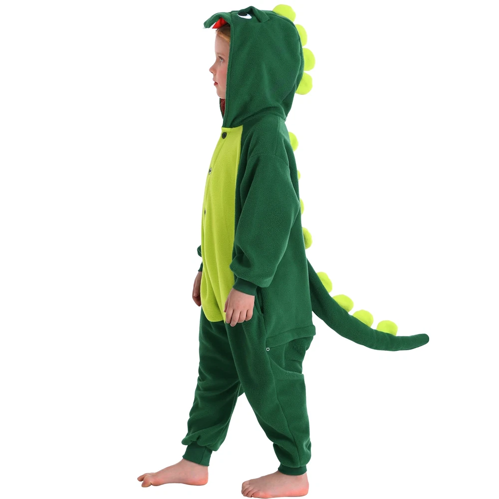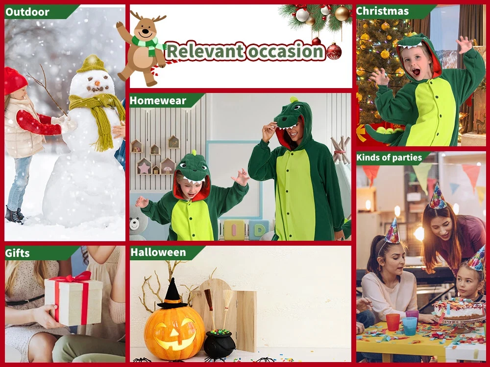 This Christmas, let's make our homes a haven of warmth, laughter and unforgettable memories - all in these festive dinosaur one-piece pajamas. The kids dinosaur suits are made of high quality polyester. Soft,skin-friendly and elastic,keeping children comfortable all day long. Dinosaur one-piece sleepwears using only the finest eco-friendly materials. They are free from irritants and unpleasant odors, ensuring your child sleeps peacefully and safely. Details The hat is designed according to the real appearance of the dinosaur , which is cute and fashionable. On the back of pijamas de dinosaurios para niños are designed a lovely dinosaur tail. Front button design in accordance with the dinosaur pjs for kids. At the same time easy to button,strict . The pockets are designed to keep children's hands free and warm at the same time. Occasions On chilly winter evenings,our dinosaur hooded onesie pajamas for girls and boys provide extra warmth and coziness. Whether watching a movie, reading a book, or simply relaxing in bed, the material keeps one comfortably warm. On lazy weekend mornings or afternoons, the soft dinosaur suits are perfect for lounging around the house, doing nothing in particular, and simply enjoying the comfort of being cozy and warm. When you just need to run a quick errand, like checking the mailbox or grabbing a few items from the store, the pajamas can serve as a casual and comfortable outfit. Children often love pajamas with fun designs like dinosuar. These cute animal pajamas can make bedtime more exciting and help children feel cozy and ready for a good night's sleep. During holidays like Christmas or Halloween, dinosaur themed pajamas like these can be a great way to celebrate. They add to the festive atmosphere and make for fun photos and memories. When hosting a sleepover or pajama party, dragon costume kids add a fun and unique element. Children can play, watch movies, or simply hang out in their dinosaur pajamas, creating memorable experiences. The Shipping We will ship the item within 1-3 days after receiving the payment. Feedback If you find any problems (for example size, broken,color ,wrong item and so on) after receiving the goods, please contact us in time,we will try our best to solve you problems. If you are satisfied with the product,please give us five stars.