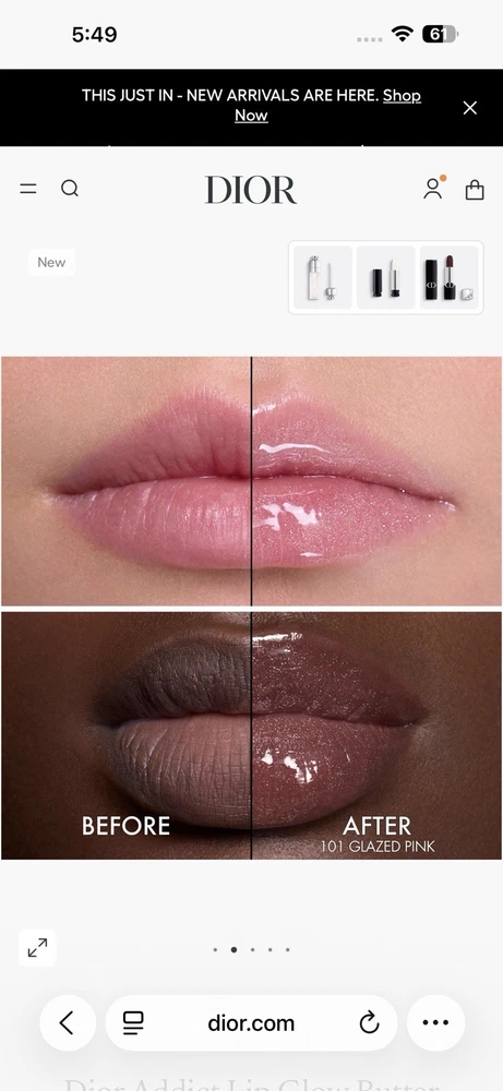 Dior Addict Lip Glow Butter is a high-shine lip treatment that is the perfect balance between a balm and gloss. Made from 90% natural-origin ingredients¹ and infused with a peptide and ceramide duo, it instantly enhance the look of lips with a touch of color and shine while deeply hydrating them for 24 hours.² The buttery texture visibly plumps and smooths lips for 24 hours,³ while providing an ultra-comfortable, soothing sensation for up to 8 hours.⁴ The applicator hugs the natural shape of your lips, delivering a soft, pillowy feel with every swipe.