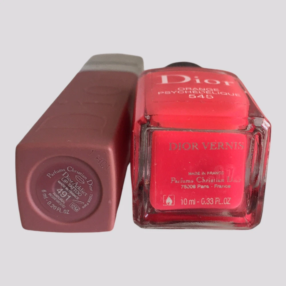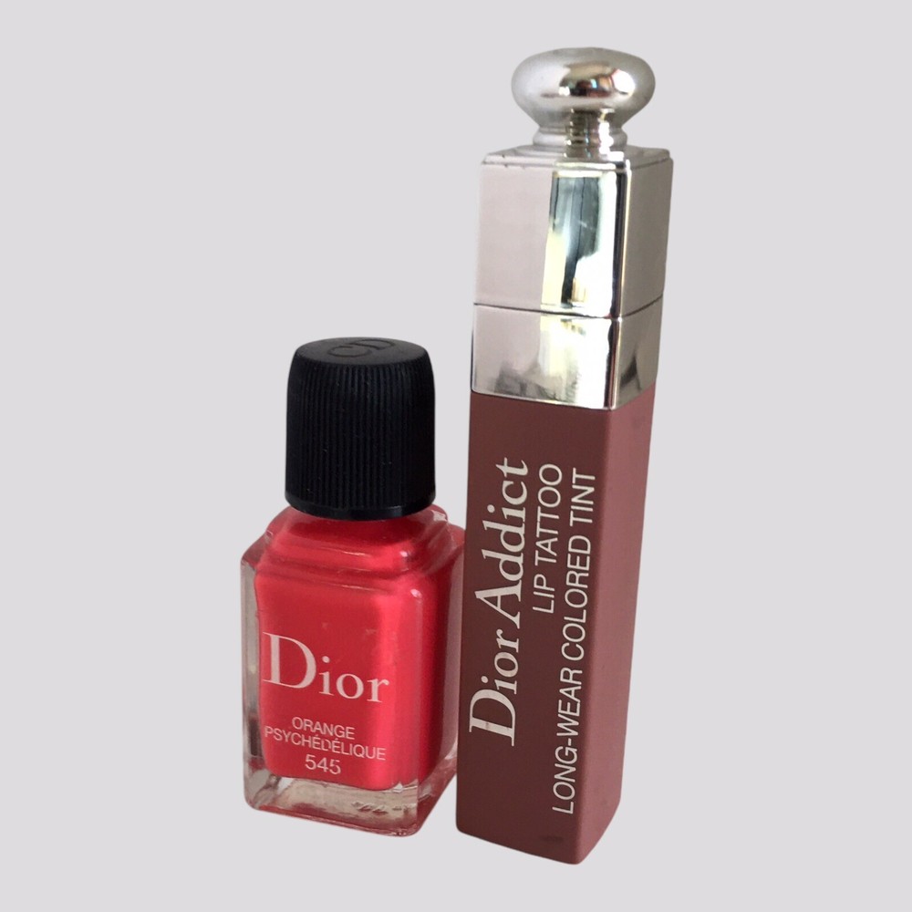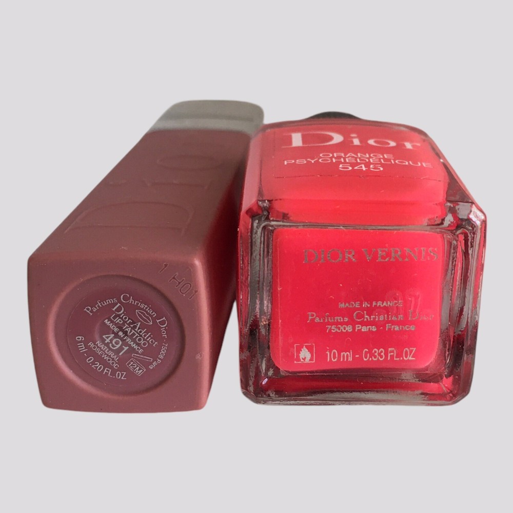 You will receive: 1 (one) Dior Addict Lip Tattoo Long-Wear Colored Tint 491 NATURAL ROSEWOOD - 6ml/0.20 fl.oz. (unsealed, unused, untested, full and without retail box) 1 (one) Dior Vernis Long-Wearing Nail Lacquer 545 ORANGE PSYCHÉDÉLIQUE - 10ml/0.33 fl.oz. (unsealed, unused, untested, full and without retail box) * Note: ORIGINAL BOXES ARE NOT INCLUDED. * Just for clarification, items are unsealed exactly as pictured. * These items will be placed in a box and ship in a bubble mailer. Terms and Conditions: Conditions are “New Old Stock”unsealed, unused, untested, full and without retail boxes. Lip gloss and nail polish set is 100 percent authentic, Dior’s cosmetic scientist’s exclusive discontinued shades and formulas. No expiration dates indicated. Sold as is, as found and as pictured. All photos are an ACCURATE REPRESENTATION of the lip gloss and nail polish set you would be purchasing. Please zoom into the pictures closely and judge the condition, size and content for yourself as our photos are a large portion of our description. Any concerns about condition please address these concerns before purchasing. We aim to provide accurate and honest descriptions. Please read descriptions carefully. We try to describe everything in as much detail as possible, but if you still have questions, please don't hesitate to ask. We will be more than happy to answer your questions and provide you with additional pictures if necessary. Most orders ship within 3-5 business days (Business days Mon-Fri) with USPS GROUND ADVANTAGE. Due to export limitations and restrictions, items listed in the Health & Beauty category CANNOT be shipped with eBay International Shipping. * Please check items included in eBay's hazardous, restricted or regulated materials policy. To ensure a positive shopping experience for all our customers, returns ARE accepted. Item(s) can be returned in its original condition for a full refund within 30 days of receipt; however, if an item is damaged or defaced by the customer, or if a new item is returned opened, used or without the tag(s) attached, the refund amount will be reduced by up to 50% as allowable by eBay. By purchasing this item, you are agreeing to this store policy. All returns must go through eBay Returns Center. For any reason that you no longer want to keep your order, please open a return request through eBay to return an item. We will provide a return label free of charge. We abide by eBay’s rules and regulations for returns, if they are met, you will refunded. If you have any further questions about the return policy, please contact an eBay service agent. If there is an issue with your purchase, PLEASE do not leave negative feedback before you have contacted us to resolve any issues. We will work with you quickly to resolve any questions or problems. If any of our national network of stores identify unreasonable, problematic transactions, we reserve the right to block any buyer from future purchases at our discretion. Buy with confidence and rest assured that you are dealing with an experienced store whose #1 priority is customer satisfaction. We list new items continuously, so add us to your favorites and check back often as you never know what you'll find here. Look around in our store as we have a huge selection of fragrances, skincare, makeup and other beauty products. THANK YOU for shopping with us! We want you to be happy with your purchase! PLEASE don't forget to leave positive feedback and give 5 stars in Seller's Rating. The information provided here is strictly to be used for informational purposes only. We do not represent or warrant the product details, ingredients and nutritional value, and any other product information to be accurate or complete. Manufacturers improve or change their product formulas, update labels, and change their packaging. It is recommended that you do not solely rely on the information described in this listing. For any specific product info or concerns it is recommended that you contact the manufacturer directly. If there are healthcare concerns or questions, please contact your licensed healthcare professional for advice. Attention VeRO members: We are not affiliated or endorsed by the companies mentioned in this listing. All trademarks and copyrights are acknowledged, they are only used for informative description of the items offered for sale. All items are authentic as evidenced in photos, legally acquired and owned, and hence covered under First Sale Doctrine. Unlawful VeRO removal of this listing WILL constitute perjury and result in legal action.