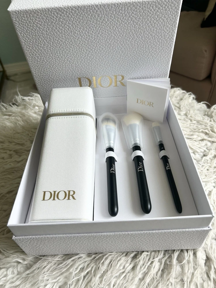 Authentic Dior Backstage Brush Set – Brand New NWT This is a NWT, Dior Backstage brush set that includes three professional makeup brushes and a Dior zip travel brush case. Details: • Dior Backstage Fluid Foundation Brush (No. 11) • Dior Backstage Blush Brush (No. 16) • Dior Backstage Eyeshadow Shader Brush (No. 21) • Dior zipper with logo printed Dior brush case (textured white, logo embossed). Size: 7.5 x 2.5 x 2.5 (inches) Also included: •Dior white branded box • Dior branded wrapping paper