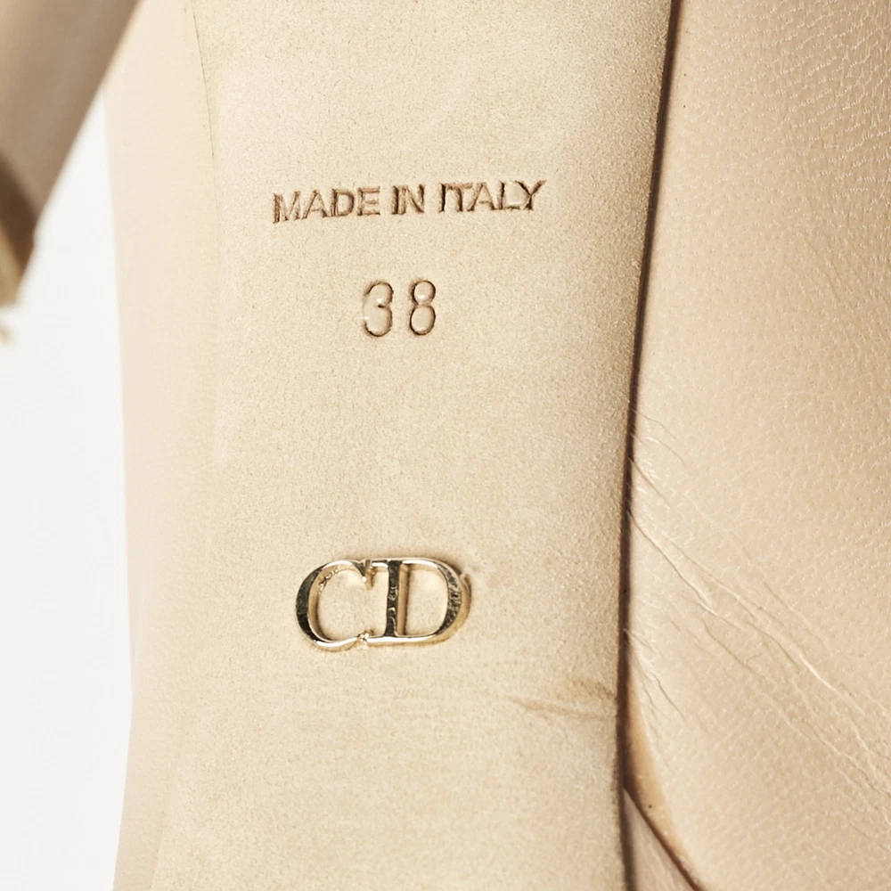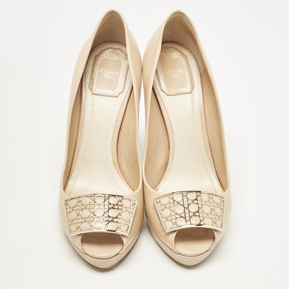 Make a chic style statement with these designer pumps. They showcase sturdy heels and durable soles, perfect for your fashionable outingsCertified by The Luxury Closet - This item has gone through a detailed authentication process overseen by our experts. We offer a lifetime guarantee of authenticity on all our items. Import duties, taxes and charges are not included in the item price. These charges are the buyers responsibility. Please check with your country’s customs office to determine what these additional cost will be prior to buying. Our eBay Store About Us Contact Us Add to Favorite Sellers Dior Beige Leather Cannage Plaque Peep Toe Platform Pumps Size 38 $225.5 Make a chic style statement with these designer pumps. They showcase sturdy heels and durable soles, perfect for your fashionable outings Product Details Brand Color Beige Dimensions Material Leather Size 38 Outsole Width 7.5 cm Outsole Length 21.5 cm Heel Height 12 cm Includes Original Dustbag, Original Box Certified by The Luxury Closet This item has gone through a detailed authentication process overseen by our experts. We offer a lifetime guarantee of authenticity on all our items. How We Check The in-house team of experts at The Luxury Closet is highly trained to verify the authenticity and the condition of the luxury products. They ensure that only 100% authentic items are put on sale.The evaluation process is unique with its own mix of assessment criteria and differs according to the category. Each item is evaluated based on the following combination of hallmarks, hardware, stitching, symmetry, material, craftsmanship, stamping, codes, hologram stickers, and packaging. Our authenticators also check if the items have been modified or amended (e.g., aftermarket diamonds, replaced batteries, repaired bags, etc.) International Buyers Import duties, taxes and charges are not included in the item price. These charges are the buyers responsibility. Please check with your country’s customs office to determine what these additional cost will be prior to buying.