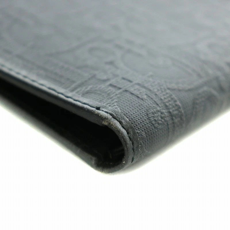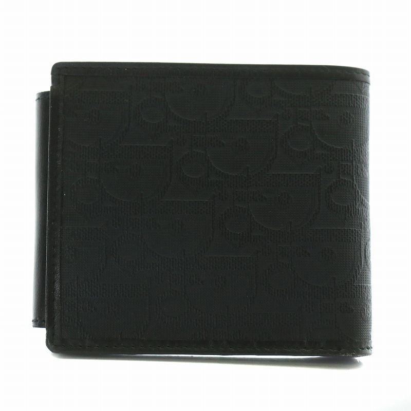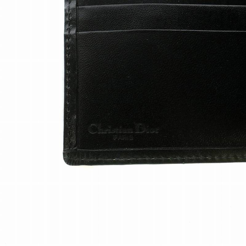 Dior Bi-Fold Leather Wallet Black Trotter Pattern Gold Hardware