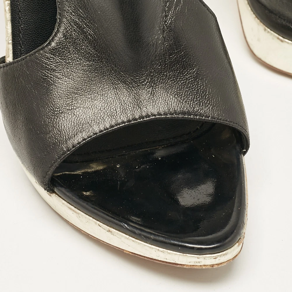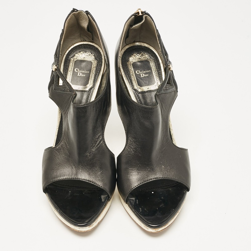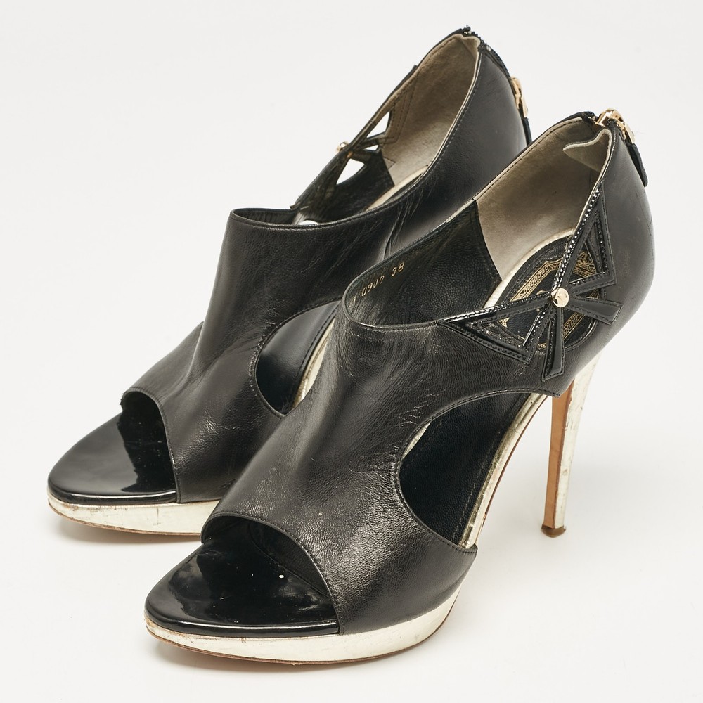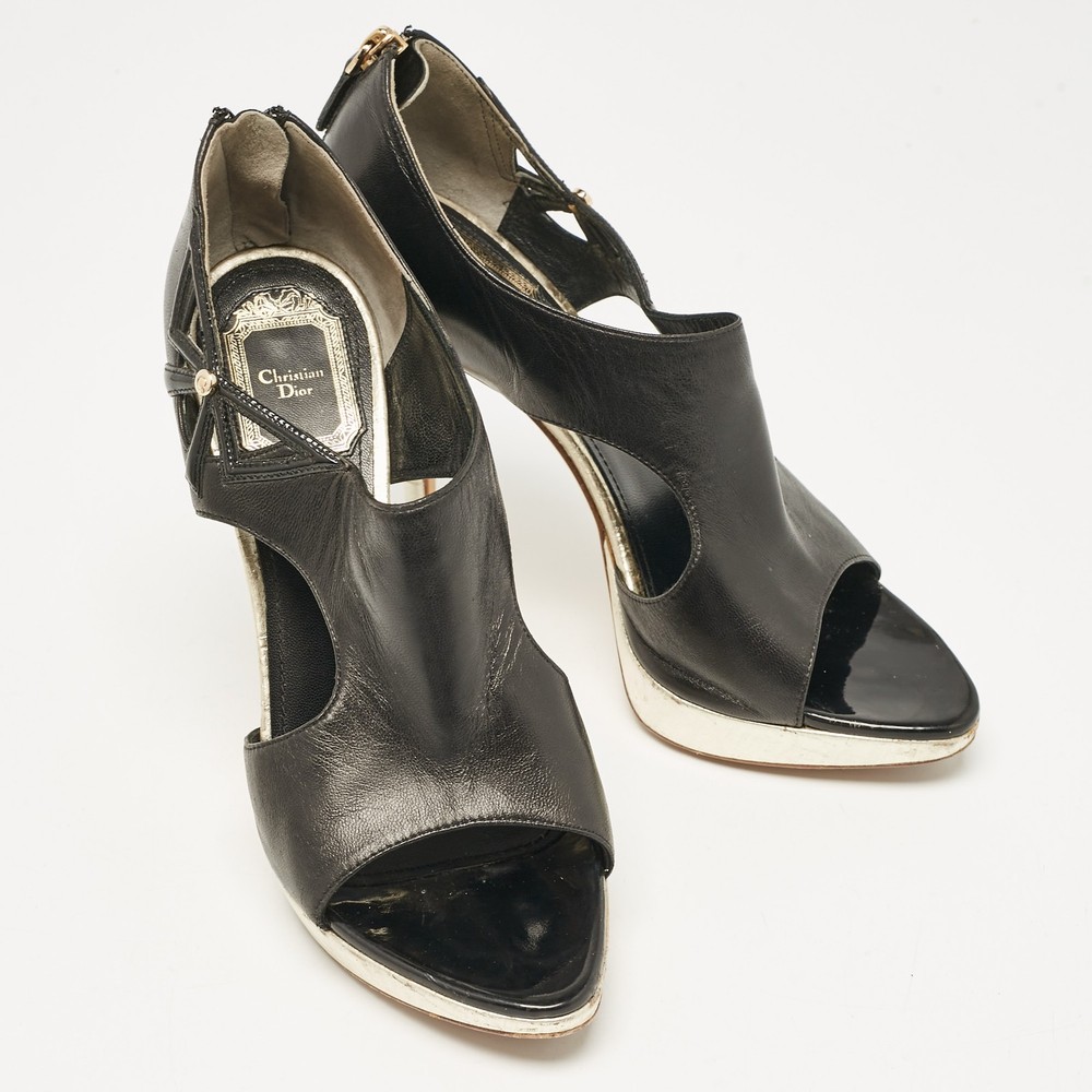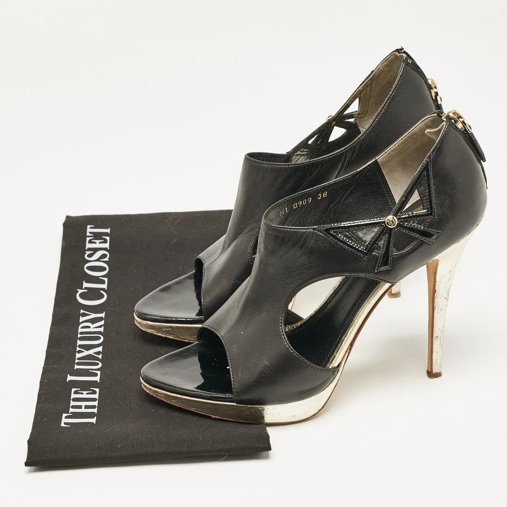 Dior Black Gold Leather Bow Cut Out Platform Pumps Size 38