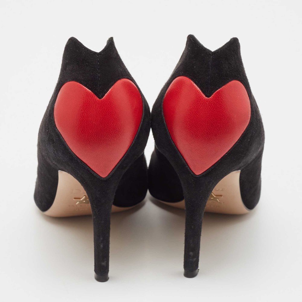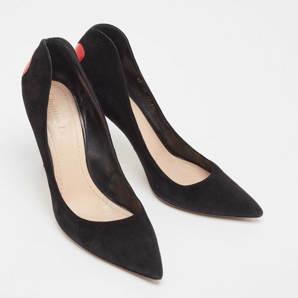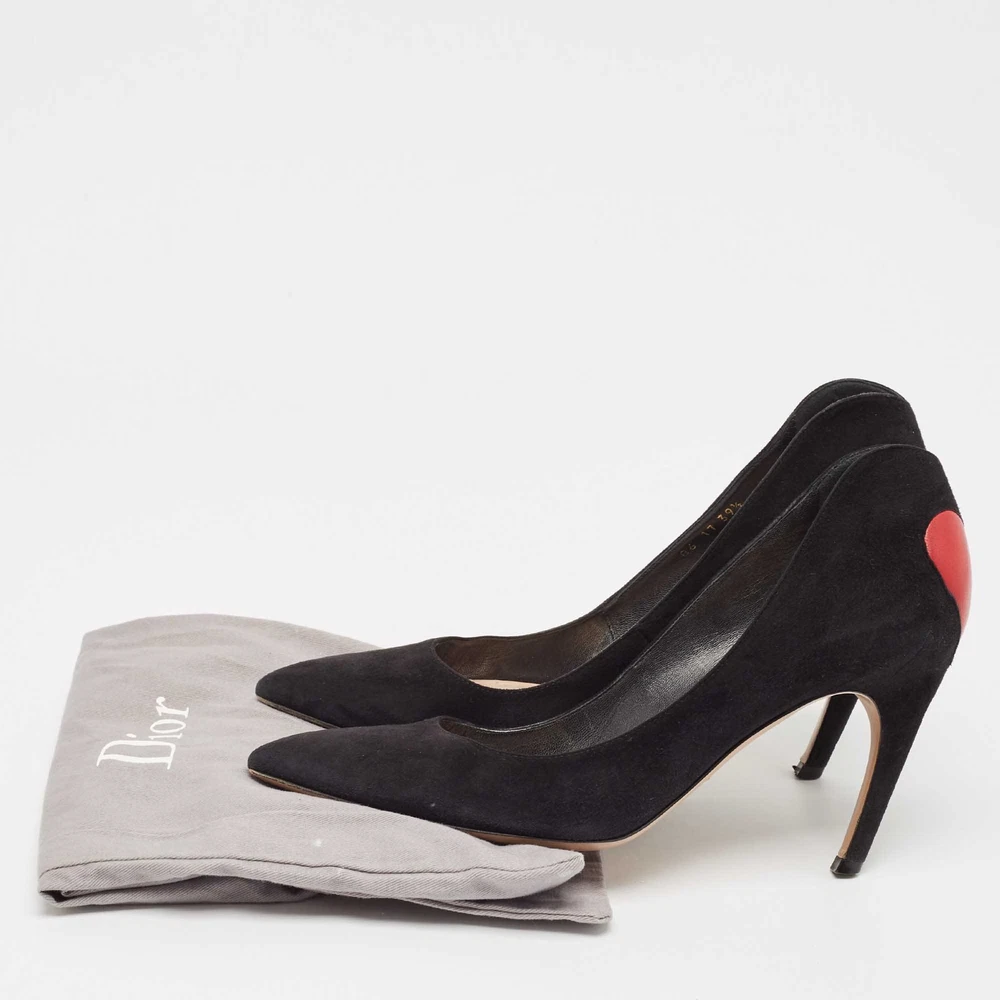 Gift your feet these elegant pumps by Dior today. Crafted using black suede, the pointed toe pumps are a blend of quality and appeal. They feature pointed toes, heart detailing on the counters, leather lined insoles, and 8.5 cm heels.Certified by The Luxury Closet - This item has gone through a detailed authentication process overseen by our experts. We offer a lifetime guarantee of authenticity on all our items. Import duties, taxes and charges are not included in the item price. These charges are the buyers responsibility. Please check with your country’s customs office to determine what these additional cost will be prior to buying. Our eBay Store About Us Contact Us Add to Favorite Sellers Dior Black/Red Suede and Leather Heart Pointed Toe Pumps Size 39.5 $151.8 Gift your feet these elegant pumps by Dior today. Crafted using black suede, the pointed toe pumps are a blend of quality and appeal. They feature pointed toes, heart detailing on the counters, leather lined insoles, and 8.5 cm heels. Product Details Brand Color Black Dimensions Material Leather, Suede Size 39.5 Outsole Width 8 cm Outsole Length 23 cm Heel Height 8.5 cm Includes Original Dustbag, The Luxury Closet Packaging Certified by The Luxury Closet This item has gone through a detailed authentication process overseen by our experts. We offer a lifetime guarantee of authenticity on all our items. How We Check The in-house team of experts at The Luxury Closet is highly trained to verify the authenticity and the condition of the luxury products. They ensure that only 100% authentic items are put on sale.The evaluation process is unique with its own mix of assessment criteria and differs according to the category. Each item is evaluated based on the following combination of hallmarks, hardware, stitching, symmetry, material, craftsmanship, stamping, codes, hologram stickers, and packaging. Our authenticators also check if the items have been modified or amended (e.g., aftermarket diamonds, replaced batteries, repaired bags, etc.) International Buyers Import duties, taxes and charges are not included in the item price. These charges are the buyers responsibility. Please check with your country’s customs office to determine what these additional cost will be prior to buying.