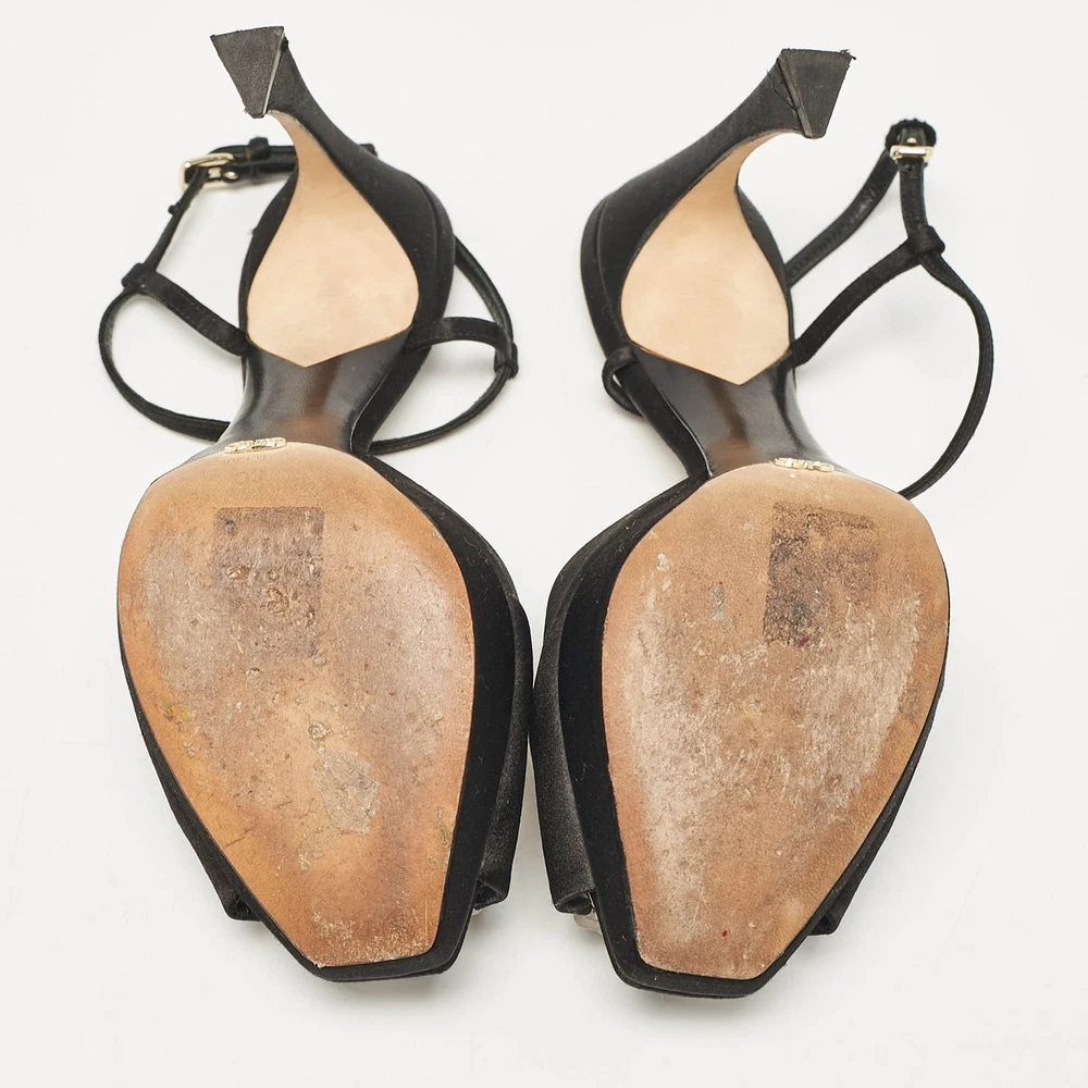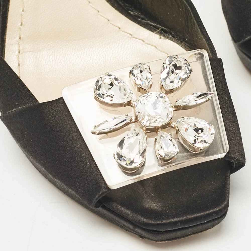 These sandals will frame your feet in an elegant manner. Crafted from quality materials, they display a classy design and comfortable insoles.Certified by The Luxury Closet - This item has gone through a detailed authentication process overseen by our experts. We offer a lifetime guarantee of authenticity on all our items. Import duties, taxes and charges are not included in the item price. These charges are the buyers responsibility. Please check with your country’s customs office to determine what these additional cost will be prior to buying. Our eBay Store About Us Contact Us Add to Favorite Sellers Dior Black Satin Crystal Embellished Ankle Strap Sandals Size 36 $135.3 These sandals will frame your feet in an elegant manner. Crafted from quality materials, they display a classy design and comfortable insoles. Product Details Brand Color Black Dimensions Material Satin Size 36 Outsole Width 7 cm Outsole Length 20.5 cm Heel Height 11 cm Includes Original Dustbag, Original Box, Info Card Certified by The Luxury Closet This item has gone through a detailed authentication process overseen by our experts. We offer a lifetime guarantee of authenticity on all our items. How We Check The in-house team of experts at The Luxury Closet is highly trained to verify the authenticity and the condition of the luxury products. They ensure that only 100% authentic items are put on sale.The evaluation process is unique with its own mix of assessment criteria and differs according to the category. Each item is evaluated based on the following combination of hallmarks, hardware, stitching, symmetry, material, craftsmanship, stamping, codes, hologram stickers, and packaging. Our authenticators also check if the items have been modified or amended (e.g., aftermarket diamonds, replaced batteries, repaired bags, etc.) International Buyers Import duties, taxes and charges are not included in the item price. These charges are the buyers responsibility. Please check with your country’s customs office to determine what these additional cost will be prior to buying.