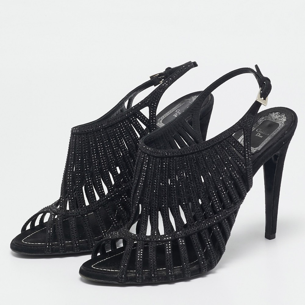 Glamour meets sophistication in Dior’s black sandals. The strappy suede exterior is adorned with dazzling crystals, and the adjustable ankle strap ensures a perfect fit. These sandals are your go to for unforgettable evenings.Certified by The Luxury Closet - This item has gone through a detailed authentication process overseen by our experts. We offer a lifetime guarantee of authenticity on all our items. Import duties, taxes and charges are not included in the item price. These charges are the buyers responsibility. Please check with your country’s customs office to determine what these additional cost will be prior to buying. Our eBay Store About Us Contact Us Add to Favorite Sellers Dior Black Suede Crystal Embellished Ankle Strap Sandals Size 41 $151.8 Glamour meets sophistication in Dior’s black sandals. The strappy suede exterior is adorned with dazzling crystals, and the adjustable ankle strap ensures a perfect fit. These sandals are your go to for unforgettable evenings. Product Details Brand Color Black Dimensions Material Suede Size 41 Outsole Width 8 cm Outsole Length 23 cm Heel Height 12 cm Includes The Luxury Closet Packaging Certified by The Luxury Closet This item has gone through a detailed authentication process overseen by our experts. We offer a lifetime guarantee of authenticity on all our items. How We Check The in-house team of experts at The Luxury Closet is highly trained to verify the authenticity and the condition of the luxury products. They ensure that only 100% authentic items are put on sale.The evaluation process is unique with its own mix of assessment criteria and differs according to the category. Each item is evaluated based on the following combination of hallmarks, hardware, stitching, symmetry, material, craftsmanship, stamping, codes, hologram stickers, and packaging. Our authenticators also check if the items have been modified or amended (e.g., aftermarket diamonds, replaced batteries, repaired bags, etc.) International Buyers Import duties, taxes and charges are not included in the item price. These charges are the buyers responsibility. Please check with your country’s customs office to determine what these additional cost will be prior to buying.