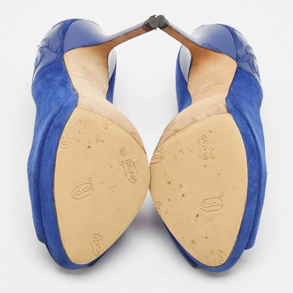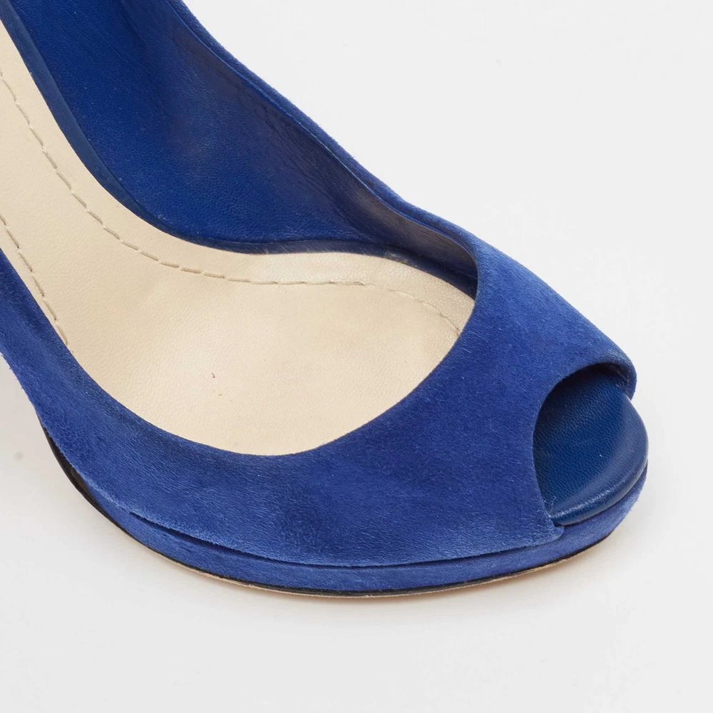 Dior Blue Suede Miss Dior Peep Toe Pumps Size 36.5 EU