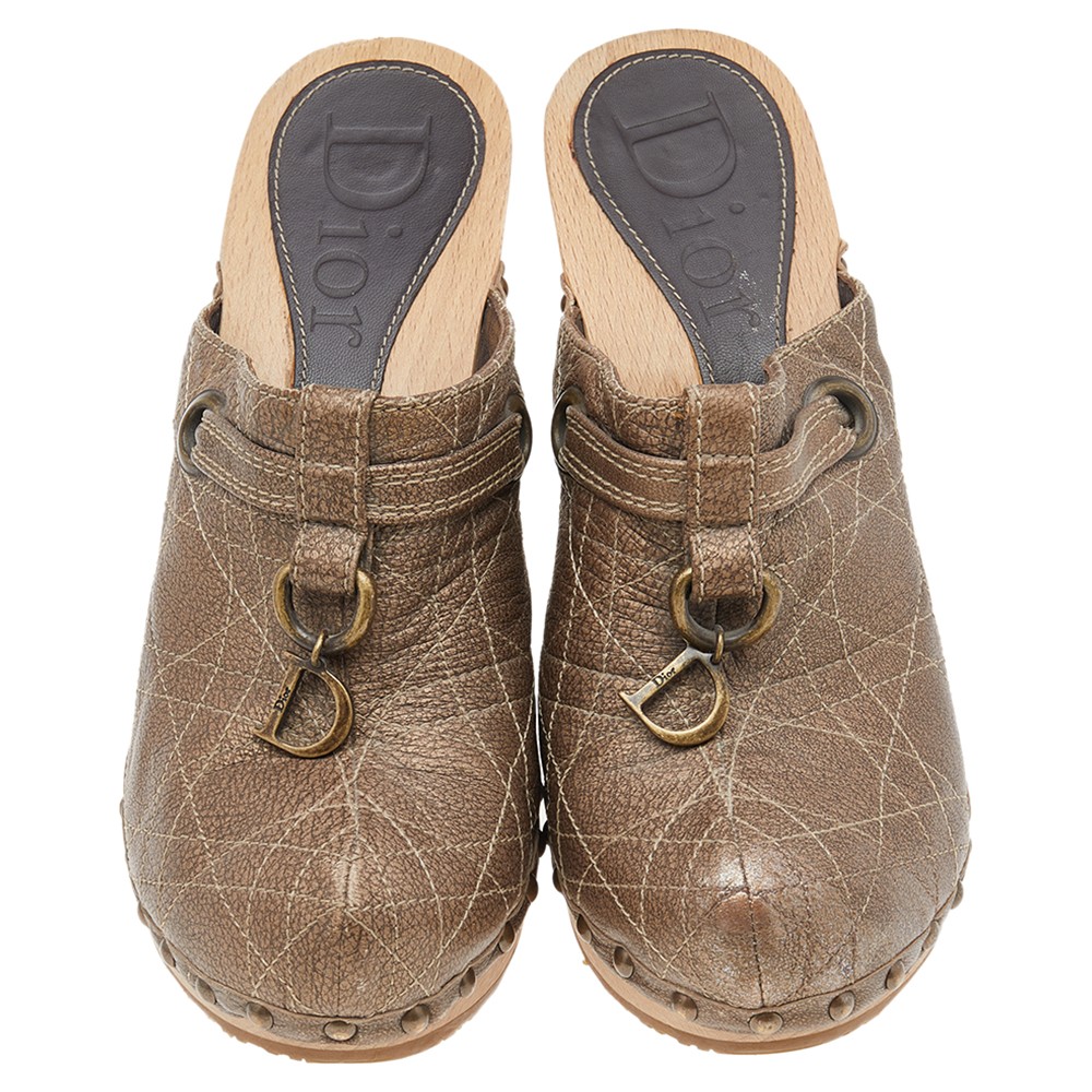 These clog slides from Dior are trendy and easy to slip on. Made in Italy, they feature Cannage detailed leather vamps accented with a metal D charm. The pair is complete with studs on the midsoles and a set of high heels. This is one pair that speaks elegance in an effortless way.Certified by The Luxury Closet - This item has gone through a detailed authentication process overseen by our experts. We offer a lifetime guarantee of authenticity on all our items. Import duties, taxes and charges are not included in the item price. These charges are the buyers responsibility. Please check with your country’s customs office to determine what these additional cost will be prior to buying. Our eBay Store About Us Contact Us Add to Favorite Sellers Dior Brown Leather Clog Mules Size 39 $416.9 These clog slides from Dior are trendy and easy to slip on. Made in Italy, they feature Cannage detailed leather vamps accented with a metal D charm. The pair is complete with studs on the midsoles and a set of high heels. This is one pair that speaks elegance in an effortless way. Product Details Brand Color Brown Dimensions Material Leather Size 39 Outsole Width 8 cm Outsole Length 22 cm Heel Height 12 cm Includes The Luxury Closet Packaging Certified by The Luxury Closet This item has gone through a detailed authentication process overseen by our experts. We offer a lifetime guarantee of authenticity on all our items. How We Check The in-house team of experts at The Luxury Closet is highly trained to verify the authenticity and the condition of the luxury products. They ensure that only 100% authentic items are put on sale.The evaluation process is unique with its own mix of assessment criteria and differs according to the category. Each item is evaluated based on the following combination of hallmarks, hardware, stitching, symmetry, material, craftsmanship, stamping, codes, hologram stickers, and packaging. Our authenticators also check if the items have been modified or amended (e.g., aftermarket diamonds, replaced batteries, repaired bags, etc.) International Buyers Import duties, taxes and charges are not included in the item price. These charges are the buyers responsibility. Please check with your country’s customs office to determine what these additional cost will be prior to buying.