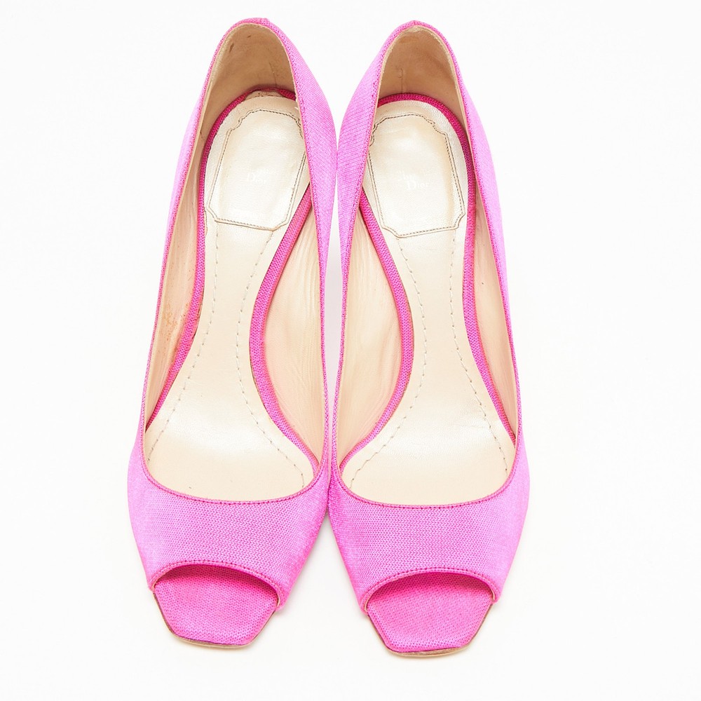 Become a modern day Cinderella with these Dior pumps. Designed in a vibrant fuchsia pink hue, this pair is designed with a canvas body and set on an eye catching flared heel with an ombre effect on it. Style with a solid dress or trousers for that head turning look.Certified by The Luxury Closet - This item has gone through a detailed authentication process overseen by our experts. We offer a lifetime guarantee of authenticity on all our items. Import duties, taxes and charges are not included in the item price. These charges are the buyers responsibility. Please check with your country’s customs office to determine what these additional cost will be prior to buying. Our eBay Store About Us Contact Us Add to Favorite Sellers Dior Fuchsia Pink Canvas Flare Heel Peep Toe Pumps Size 37.5 $174.9 Become a modern day Cinderella with these Dior pumps. Designed in a vibrant fuchsia pink hue, this pair is designed with a canvas body and set on an eye catching flared heel with an ombre effect on it. Style with a solid dress or trousers for that head turning look. Product Details Brand Color Pink Dimensions Material Fabric Size 37.5 Outsole Width 8 cm Outsole Length 23 cm Heel Height 10 cm Includes The Luxury Closet Packaging Certified by The Luxury Closet This item has gone through a detailed authentication process overseen by our experts. We offer a lifetime guarantee of authenticity on all our items. How We Check The in-house team of experts at The Luxury Closet is highly trained to verify the authenticity and the condition of the luxury products. They ensure that only 100% authentic items are put on sale.The evaluation process is unique with its own mix of assessment criteria and differs according to the category. Each item is evaluated based on the following combination of hallmarks, hardware, stitching, symmetry, material, craftsmanship, stamping, codes, hologram stickers, and packaging. Our authenticators also check if the items have been modified or amended (e.g., aftermarket diamonds, replaced batteries, repaired bags, etc.) International Buyers Import duties, taxes and charges are not included in the item price. These charges are the buyers responsibility. Please check with your country’s customs office to determine what these additional cost will be prior to buying.