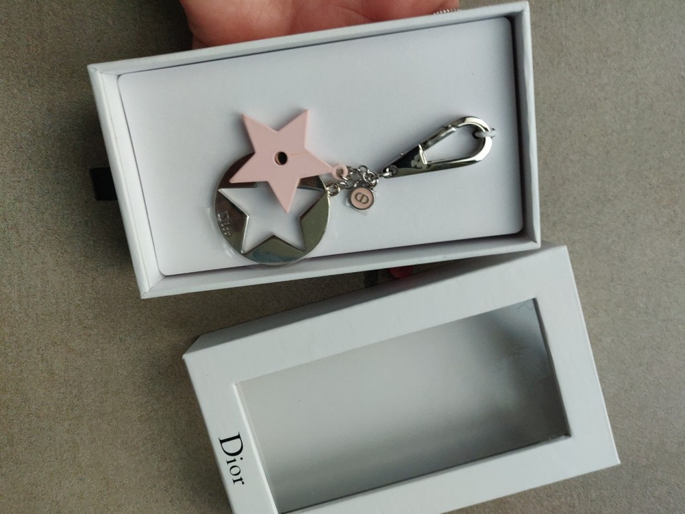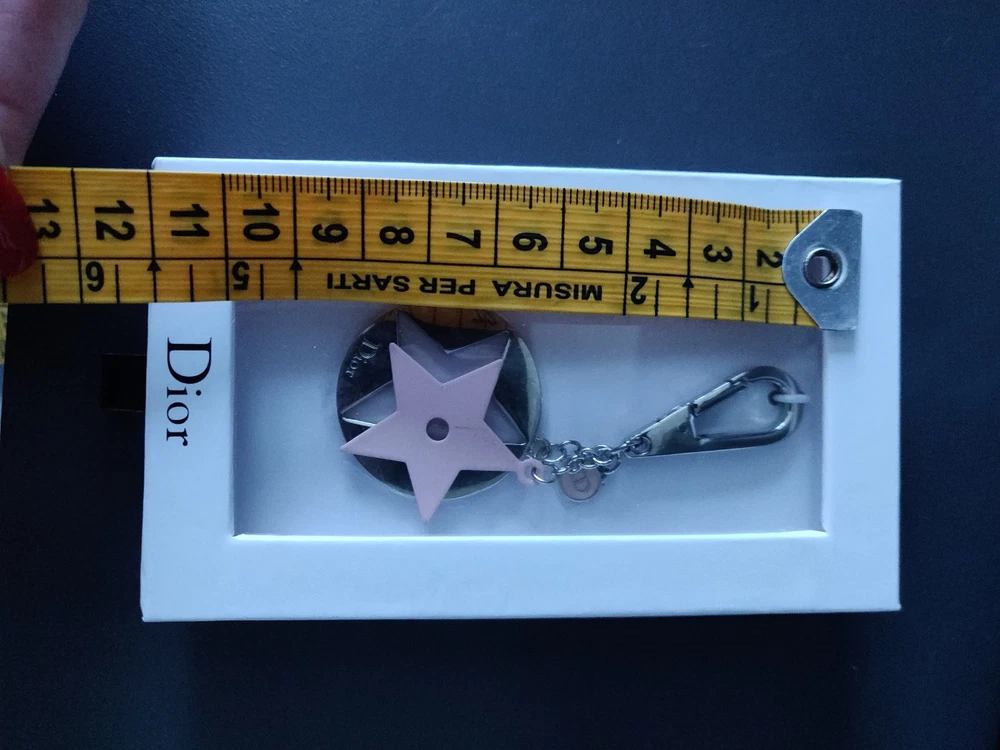 Portachiavi Dior nuovo lungo cm 9 . Con le carte con varie lingue che raccontano la storia della stella Dior . Nuovo mai usato .originale ricevuto come regalo vip Dior