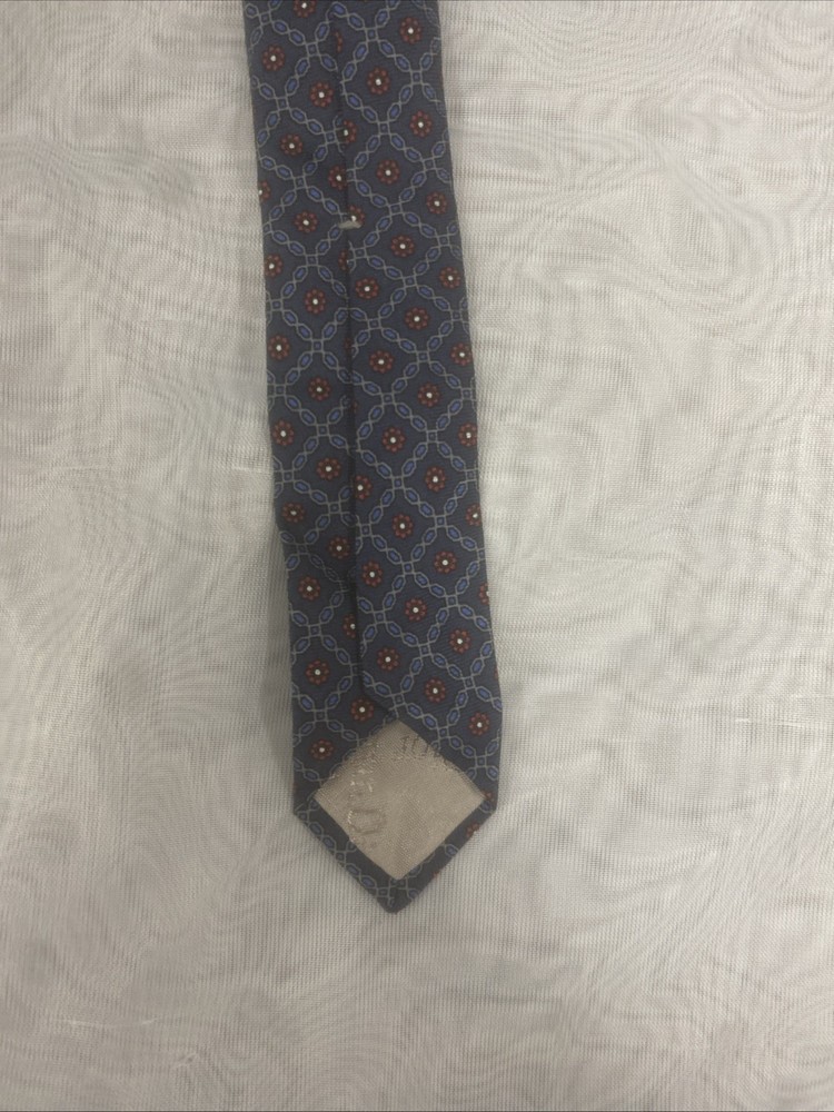 The Christian Dior Men's Blue Necktie with red and tan accents is a stylish accessory for men's formal wear. Made of 100% silk, this tie features a classic geometric pattern and a classic length of 57"-60". The multicolor design adds a touch of sophistication to any outfit, making it a versatile and fashionable choice for any occasion.