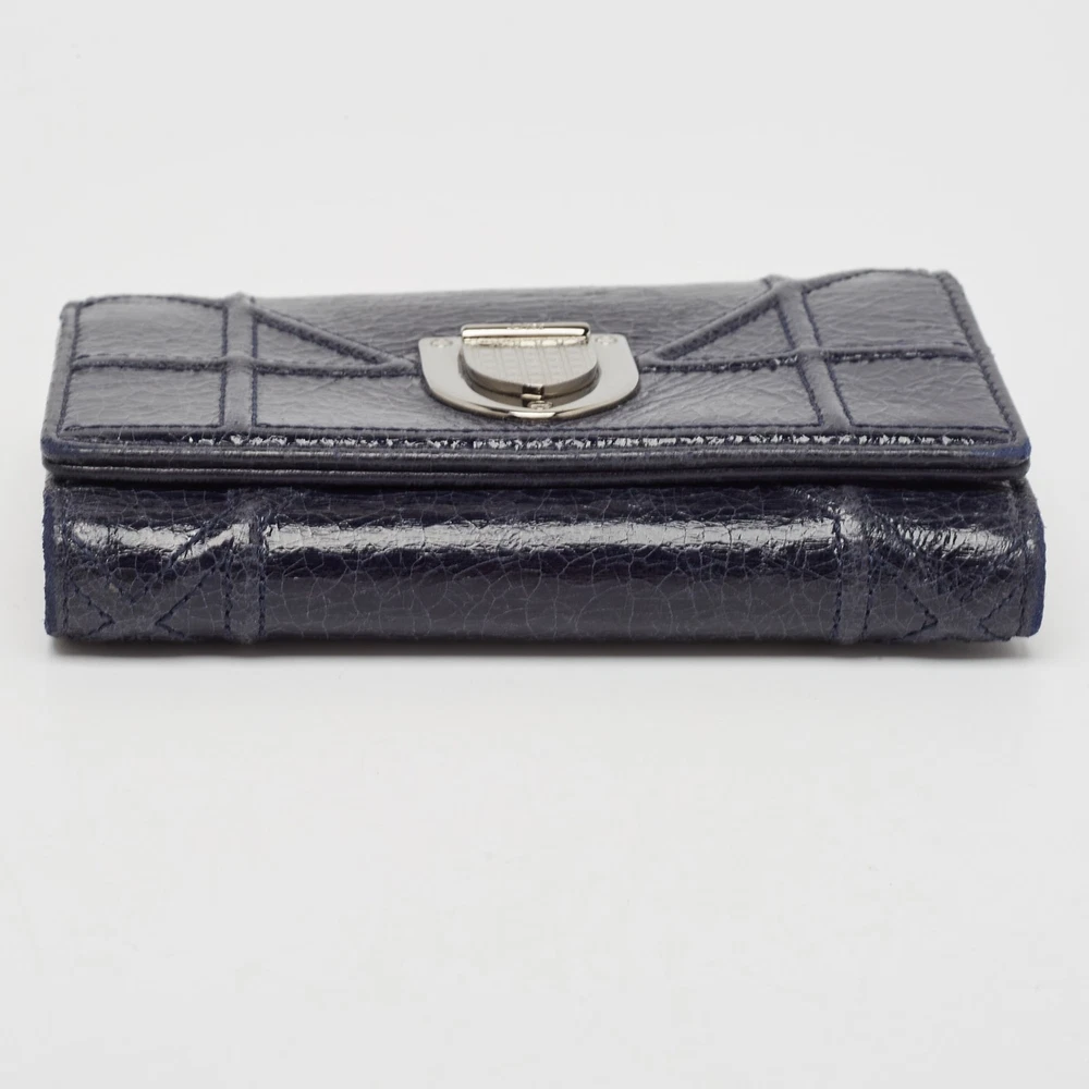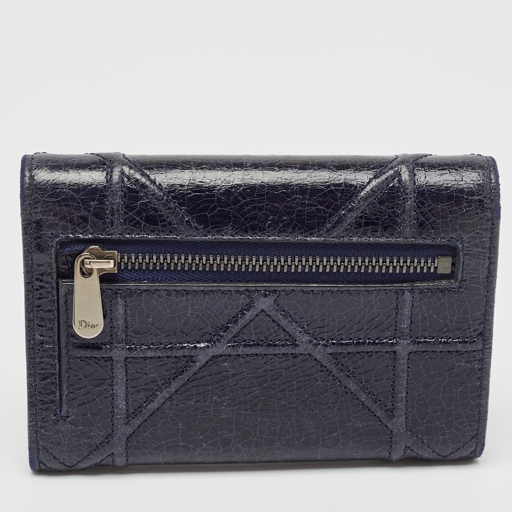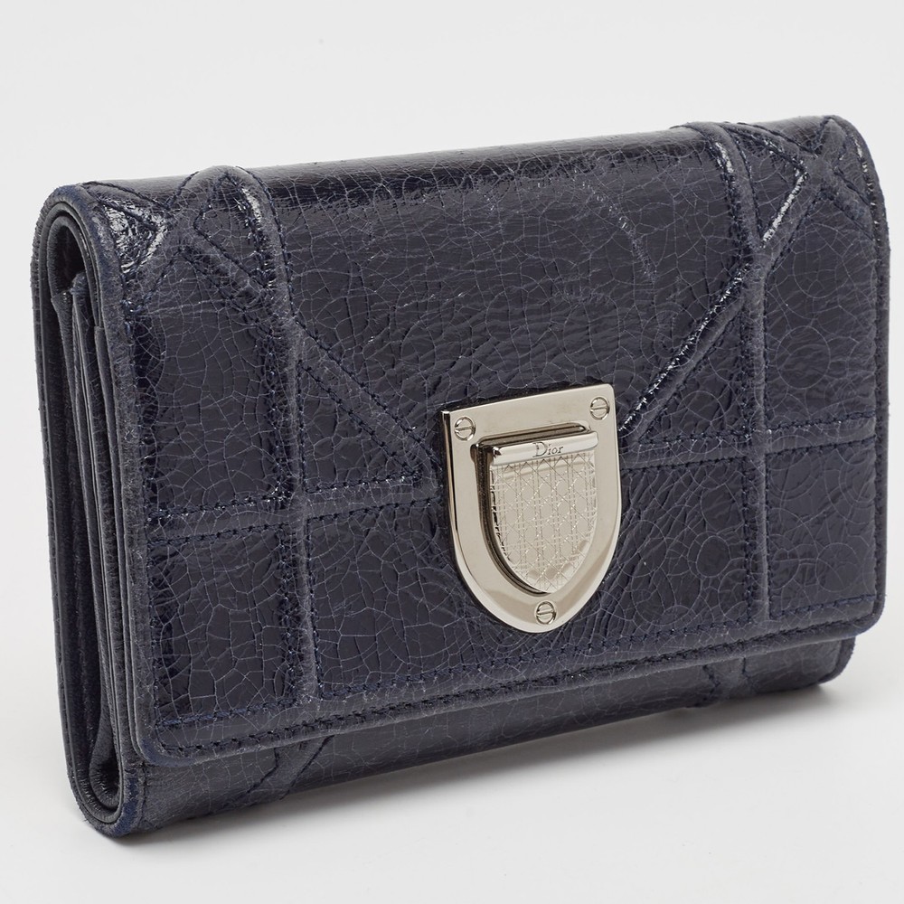 Introduced in Spring/Summer 2015 runaway, the Diorama embodies refined shape and celebrates femininity through its artistic design. The signature Cannage pattern and the silver tone accents bring out the appeal of this Dior wallet. Made from leather, it features a branded lock closure at the front, and its lined interior makes for a luxurious abode for your party essentials.Certified by The Luxury Closet - This item has gone through a detailed authentication process overseen by our experts. We offer a lifetime guarantee of authenticity on all our items. Import duties, taxes and charges are not included in the item price. These charges are the buyers responsibility. Please check with your country’s customs office to determine what these additional cost will be prior to buying. Our eBay Store About Us Contact Us Add to Favorite Sellers Dior Navy Blue Patent Leather Diorama Trifold Wallet $265.1 Introduced in Spring/Summer 2015 runaway, the Diorama embodies refined shape and celebrates femininity through its artistic design. The signature Cannage pattern and the silver tone accents bring out the appeal of this Dior wallet. Made from leather, it features a branded lock closure at the front, and its lined interior makes for a luxurious abode for your party essentials. Product Details Brand Color Navy Blue Dimensions Height: 9 cm, Width: 3 cm, Length: 13 cm Material Patent Leather Size Outsole Width Outsole Length Heel Height Includes The Luxury Closet Packaging Certified by The Luxury Closet This item has gone through a detailed authentication process overseen by our experts. We offer a lifetime guarantee of authenticity on all our items. How We Check The in-house team of experts at The Luxury Closet is highly trained to verify the authenticity and the condition of the luxury products. They ensure that only 100% authentic items are put on sale.The evaluation process is unique with its own mix of assessment criteria and differs according to the category. Each item is evaluated based on the following combination of hallmarks, hardware, stitching, symmetry, material, craftsmanship, stamping, codes, hologram stickers, and packaging. Our authenticators also check if the items have been modified or amended (e.g., aftermarket diamonds, replaced batteries, repaired bags, etc.) International Buyers Import duties, taxes and charges are not included in the item price. These charges are the buyers responsibility. Please check with your country’s customs office to determine what these additional cost will be prior to buying.