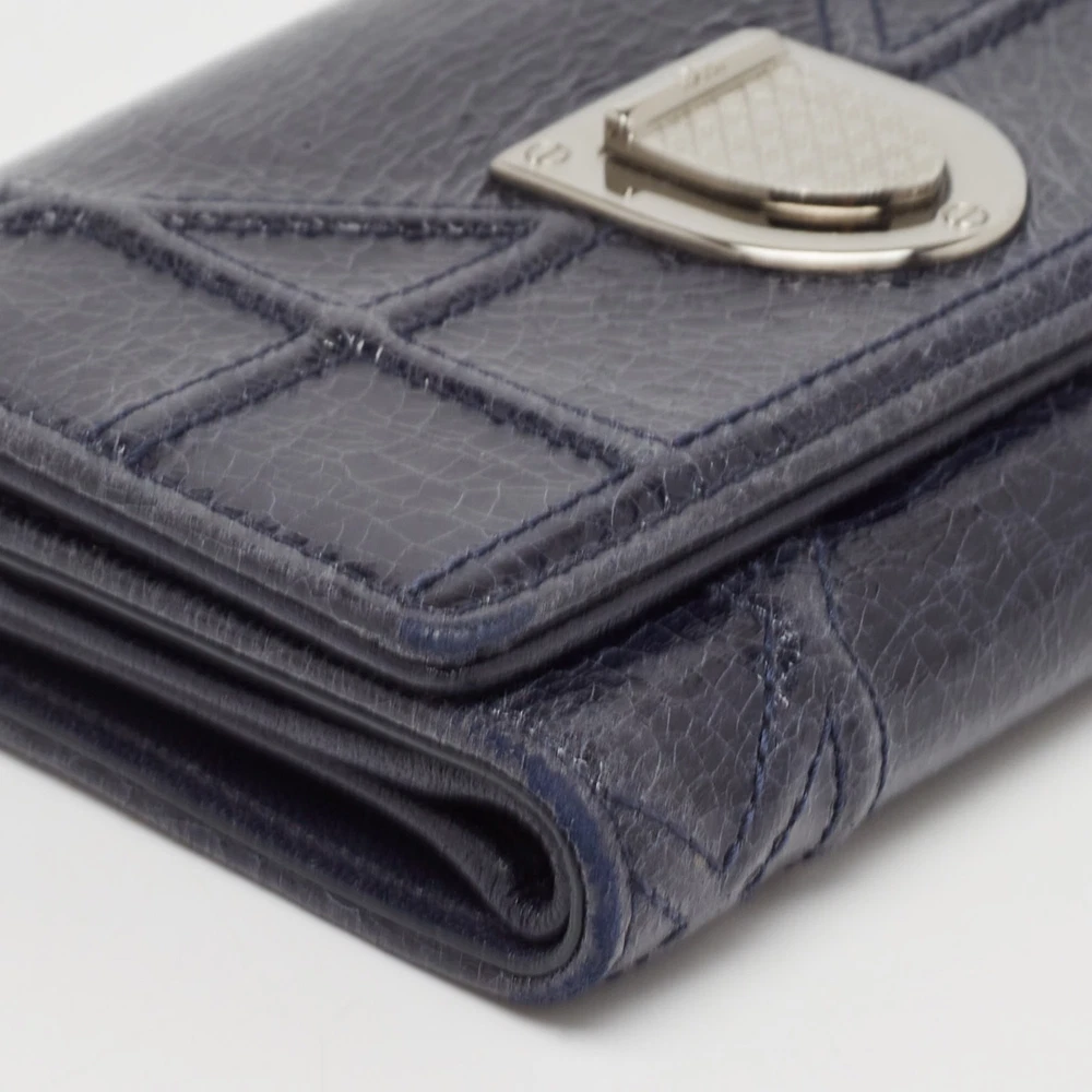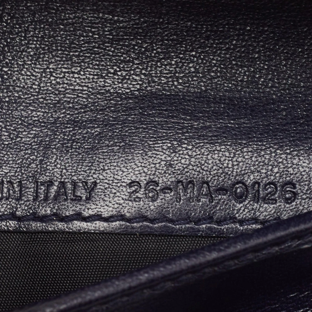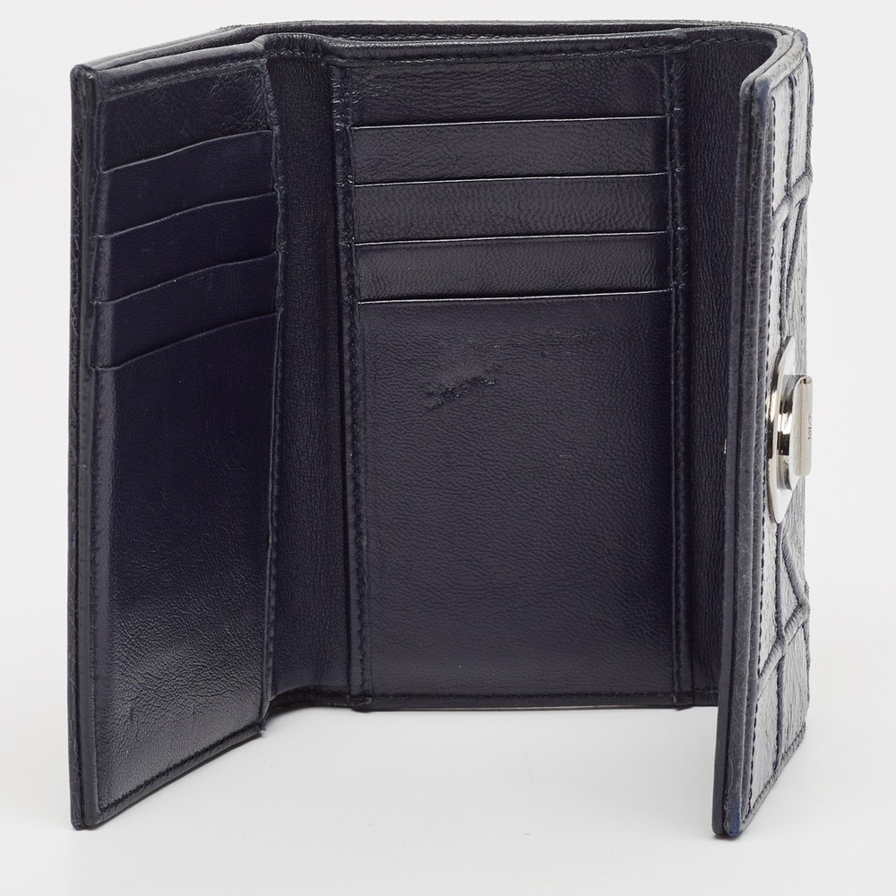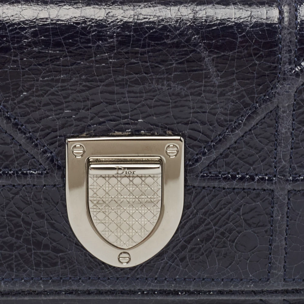 Introduced in Spring/Summer 2015 runaway, the Diorama embodies refined shape and celebrates femininity through its artistic design. The signature Cannage pattern and the silver tone accents bring out the appeal of this Dior wallet. Made from leather, it features a branded lock closure at the front, and its lined interior makes for a luxurious abode for your party essentials.Certified by The Luxury Closet - This item has gone through a detailed authentication process overseen by our experts. We offer a lifetime guarantee of authenticity on all our items. Import duties, taxes and charges are not included in the item price. These charges are the buyers responsibility. Please check with your country’s customs office to determine what these additional cost will be prior to buying. Our eBay Store About Us Contact Us Add to Favorite Sellers Dior Navy Blue Patent Leather Diorama Trifold Wallet $265.1 Introduced in Spring/Summer 2015 runaway, the Diorama embodies refined shape and celebrates femininity through its artistic design. The signature Cannage pattern and the silver tone accents bring out the appeal of this Dior wallet. Made from leather, it features a branded lock closure at the front, and its lined interior makes for a luxurious abode for your party essentials. Product Details Brand Color Navy Blue Dimensions Height: 9 cm, Width: 3 cm, Length: 13 cm Material Patent Leather Size Outsole Width Outsole Length Heel Height Includes The Luxury Closet Packaging Certified by The Luxury Closet This item has gone through a detailed authentication process overseen by our experts. We offer a lifetime guarantee of authenticity on all our items. How We Check The in-house team of experts at The Luxury Closet is highly trained to verify the authenticity and the condition of the luxury products. They ensure that only 100% authentic items are put on sale.The evaluation process is unique with its own mix of assessment criteria and differs according to the category. Each item is evaluated based on the following combination of hallmarks, hardware, stitching, symmetry, material, craftsmanship, stamping, codes, hologram stickers, and packaging. Our authenticators also check if the items have been modified or amended (e.g., aftermarket diamonds, replaced batteries, repaired bags, etc.) International Buyers Import duties, taxes and charges are not included in the item price. These charges are the buyers responsibility. Please check with your country’s customs office to determine what these additional cost will be prior to buying.