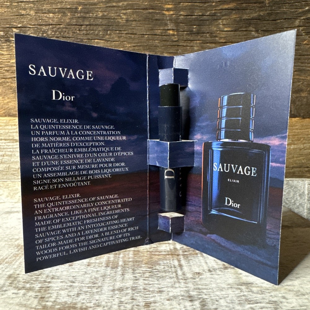 Rich, intense, and long-lasting — Sauvage Elixir by Dior is a concentrated parfum featuring spicy cinnamon, lavender, and deep woody notes. A powerful and refined interpretation of the Sauvage line. • Size: 1ml / 0.03 fl oz • Type: Parfum (concentrated) • Sample vial • Brand new MSRP for full size (2 oz / 60ml): Approximately $180