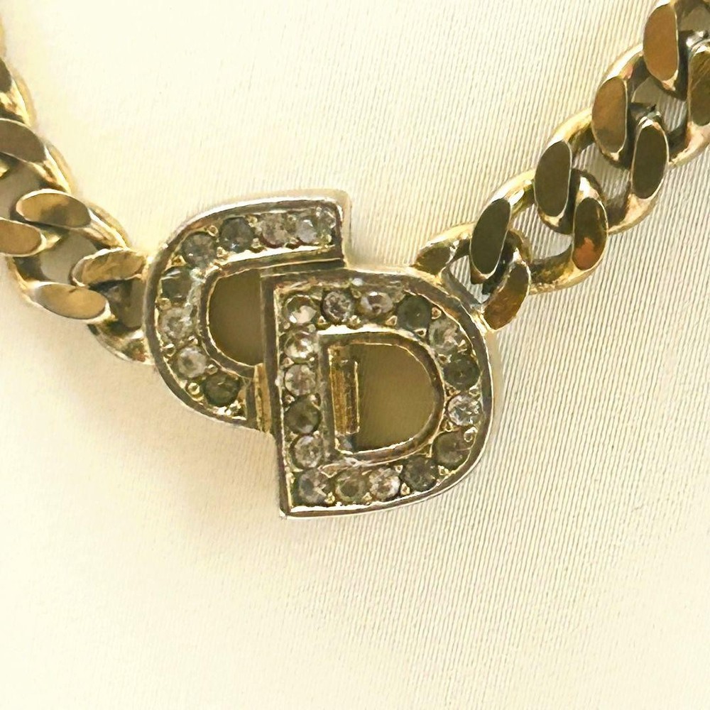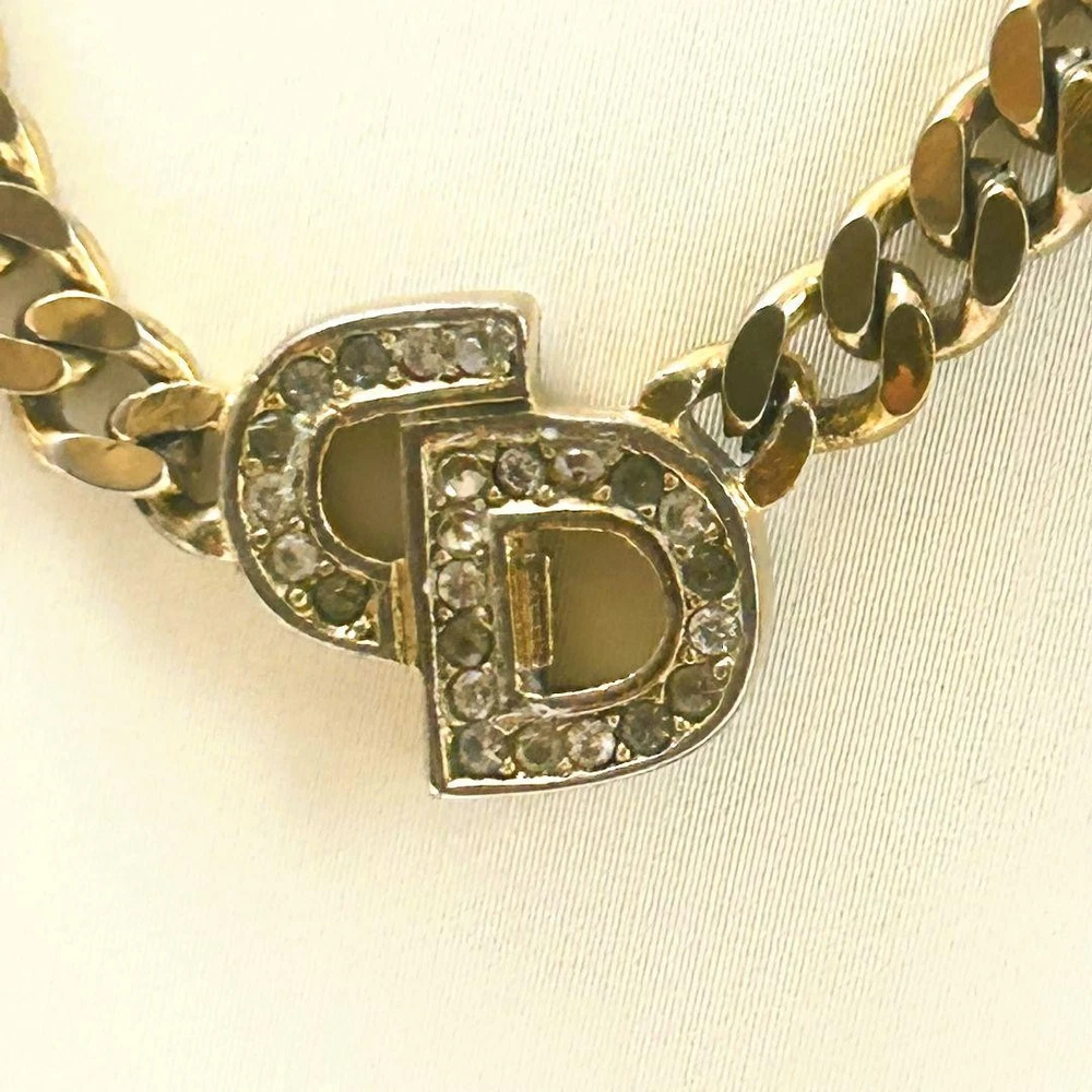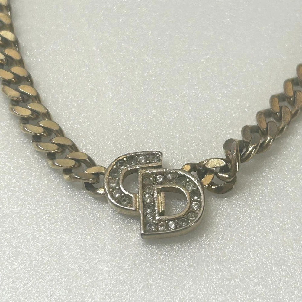 Dior Vintage CD Logo Gold Kihei Style Rhinestone Necklace