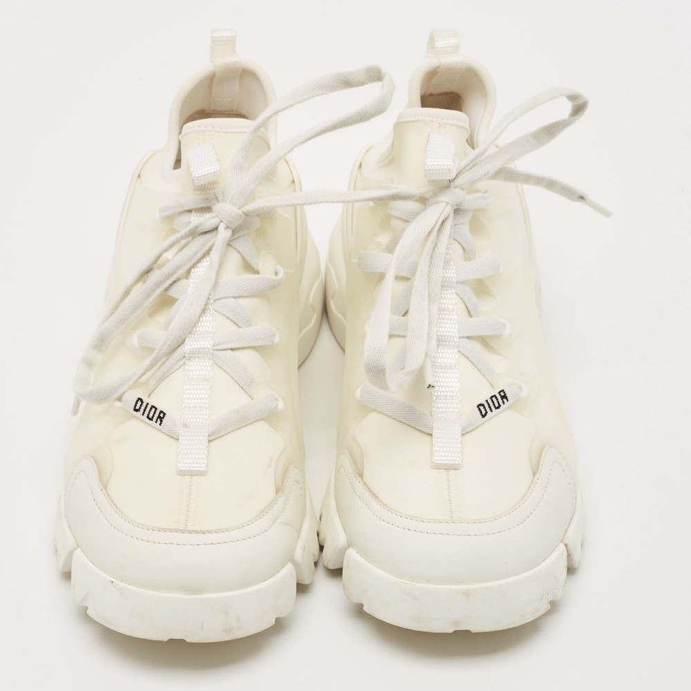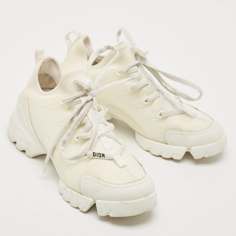 Sporty meets luxury in these Dior D Connect sneakers. The neoprene upper provides a snug fit, while the rubber sole adds grip and flexibility. A modern approach to everyday footwear.Certified by The Luxury Closet - This item has gone through a detailed authentication process overseen by our experts. We offer a lifetime guarantee of authenticity on all our items. Import duties, taxes and charges are not included in the item price. These charges are the buyers responsibility. Please check with your country’s customs office to determine what these additional cost will be prior to buying. Our eBay Store About Us Contact Us Add to Favorite Sellers Dior White Neoprene and Rubber D-Connect Sneakers Size 37.5 $530.2 Sporty meets luxury in these Dior D Connect sneakers. The neoprene upper provides a snug fit, while the rubber sole adds grip and flexibility. A modern approach to everyday footwear. Product Details Brand Color White Dimensions Material Neoprene, Rubber Size 37.5 Outsole Width 9.5 cm Outsole Length 28 cm Heel Height Includes Original Dustbag Certified by The Luxury Closet This item has gone through a detailed authentication process overseen by our experts. We offer a lifetime guarantee of authenticity on all our items. How We Check The in-house team of experts at The Luxury Closet is highly trained to verify the authenticity and the condition of the luxury products. They ensure that only 100% authentic items are put on sale.The evaluation process is unique with its own mix of assessment criteria and differs according to the category. Each item is evaluated based on the following combination of hallmarks, hardware, stitching, symmetry, material, craftsmanship, stamping, codes, hologram stickers, and packaging. Our authenticators also check if the items have been modified or amended (e.g., aftermarket diamonds, replaced batteries, repaired bags, etc.) International Buyers Import duties, taxes and charges are not included in the item price. These charges are the buyers responsibility. Please check with your country’s customs office to determine what these additional cost will be prior to buying.