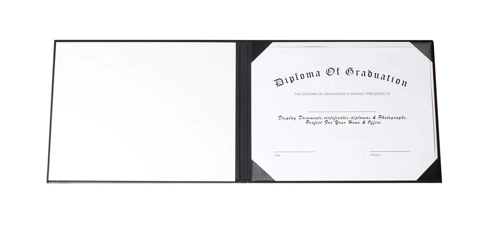 MyGradDay Diploma Cover Diploma Holder Graduation Certificate Cover Smooth 8.5x11 Black Material: Made of high-grade flat artificial leather cove Cover Closed Size: Hold a certificate or diploma of 8 1/2" x 11", 4mm foam pad Durable:4 satin corners with plastic patches inside, all reinforced edges and die-cut corners to keep certificate imprinted diploma cover for certificate can be kept for a longer time Multifunction: Creates a nice presentation and make a great souvenir for your graduation certificate, award recognition, diploma certificates, important documents and More. Wide range of uses:Award certificates, birth certificates protectors, certificate of appreciation, baptism certificates, high school diploma certificate, marriage certificates, or even stock certificates, these handy document covers offer versatility at an incredible value. Shipping We offer FREE shipping on all orders! We ship within Three business days of payment, usually sooner. We use a selection of shipping services such as UPS, FedEx, USPS etc. We only ship to the lower 48 states, no APO/FPO addresses or PO Boxes allowed. Local pickups and combined shipping options are not provided at this time. Return You can return a product for up to 30 days from the date you purchased it. Any product you return must be in the same condition you received it and in the original packaging. Please keep the receipt. Payment We accept payment by any of the following methods: PayPal Please pay as soon as possible after winning an auction, as that will allow us to post your item to you sooner! Feedback Customer satisfaction is very important to us. If you have any problem with your order, please contact us and we will do our best to make you satisfied. Contact Us If you have any queries, please contact us via ebay. We usually respond within 24 hours on weekdays. Please visit our eBay store to check out other items for sale! Thank you for shopping at our store.