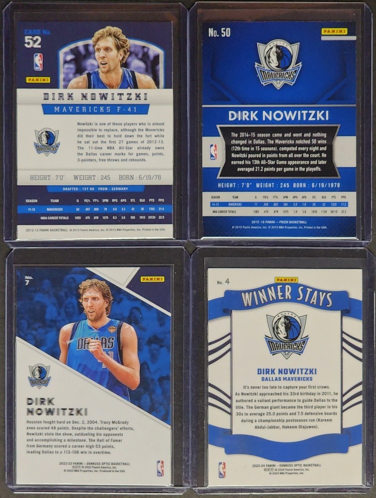 Dirk Nowitzki 4-Card Lot featuring Dallas Mavericks All-Star NBA Basketball Cards under $5