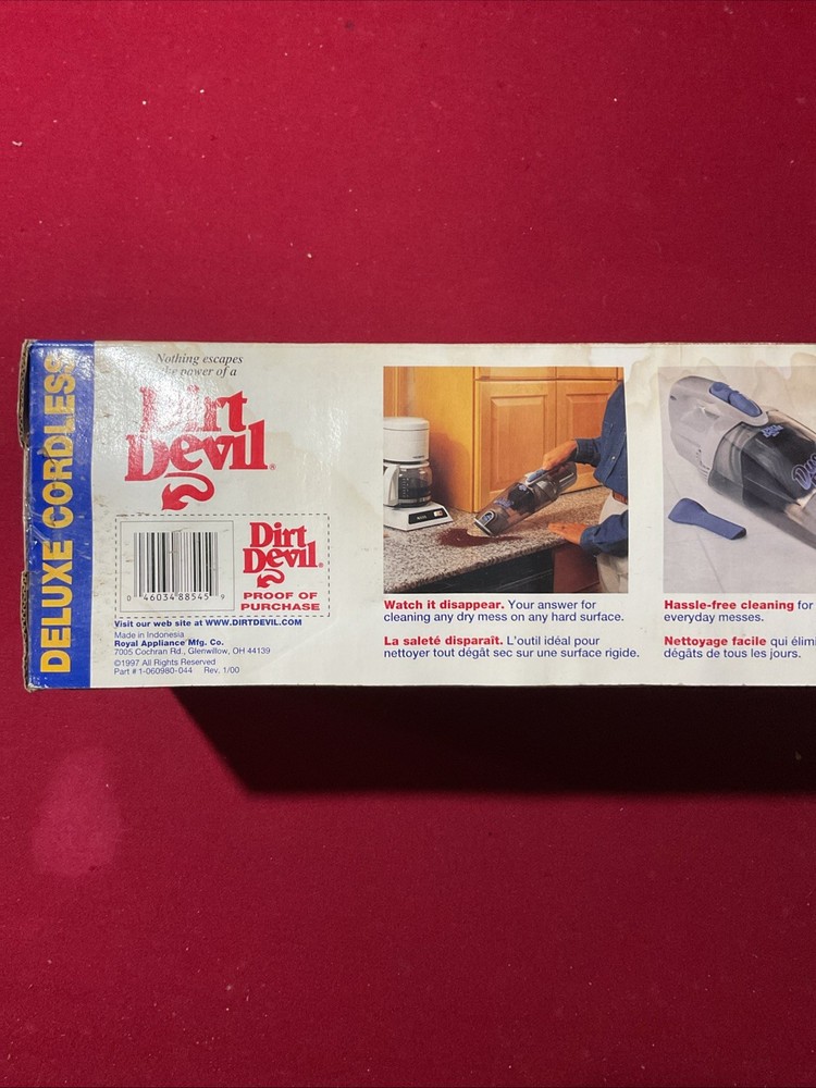 The Dirt Devil Dust Devil Deluxe Handheld Vacuum is a convenient and compact cleaning solution for any home. With its bagless design and cordless operation, it is easy to use and clean. The included extension wand makes it even more versatile for reaching tight spaces and corners. Perfect for quick cleanups or spot cleaning, this handheld vacuum by Dirt Devil is a reliable choice for keeping your home clean and tidy.