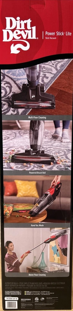 Dirt Devil Power Stick Lite 4-in-1 Corded Stick Vacuum, SD22030V Clean anywhere with 50% more power* using the versatile 4-in-1 Power Stick Lite. Its Directpath Technology gives you powerful suction and the Powered Brushroll works great on all floors. Pick up quick messes with the Removable Hand Vac and tackle hard to reach areas above floor by removing the powered floor nozzle and using the metal wand to clean up high. Take your vacuum anywhere with its lightweight design and enjoy the convenience of storing it anywhere.