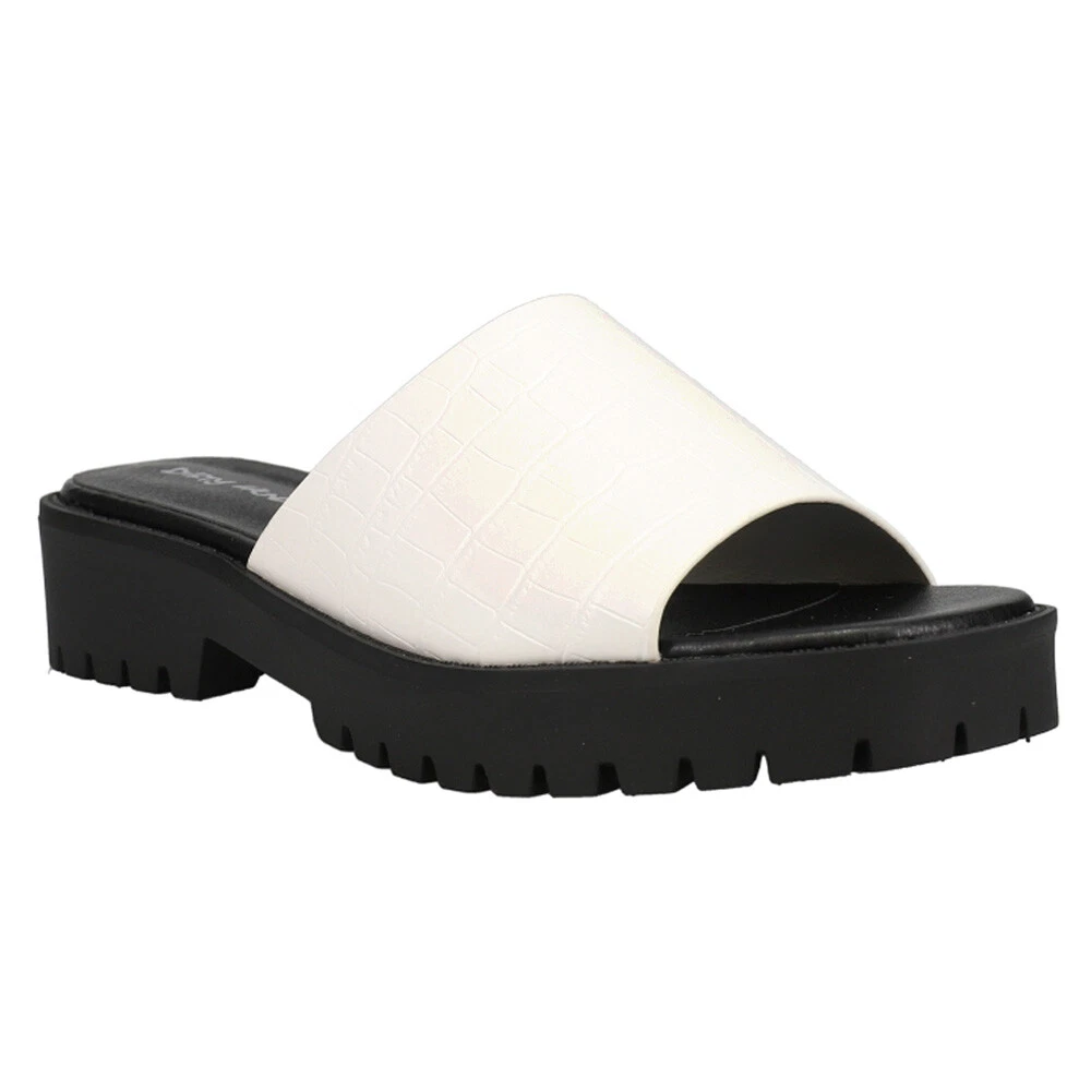Respect Croc Platform Sandals Product Details Synthetic upper Slip on entry Lightly padded footbed Durable rubber outsole 1.5 inch heel height Dirty Laundry's Respect Sandals are the perfect go with anything slip ons! The added bonus of a heel makes them dress up any outfit and give it a little edge. Featuring a synthetic croc upper, lightly padded footbed, and 1.5 inch heel. Additional Details Color: White Occasion: Casual Gender: Womens Age: Adult Brand: Dirty Laundry