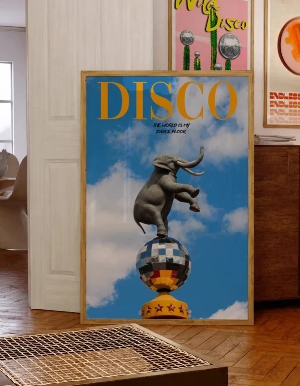 Disco Magazine Poster, 70s Poster, Blue Wall Art, Disco Print